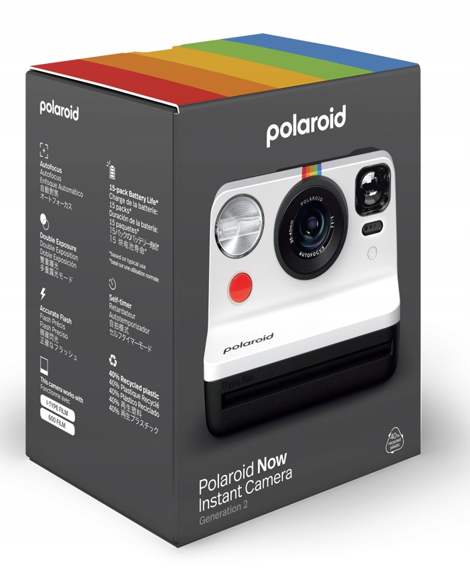 Uchwyć i zachowaj na zawsze swoje codzienne chwile dzięki Polaroid Now i-Type Instant Film Camera. Nowy analogowy aparat błyskawiczny Gen2 jest wykonany w 40% z materiałów pochodzących z recyklingu, a wewnętrzna bateria litowo-jonowa ładuje się przez USB-C.