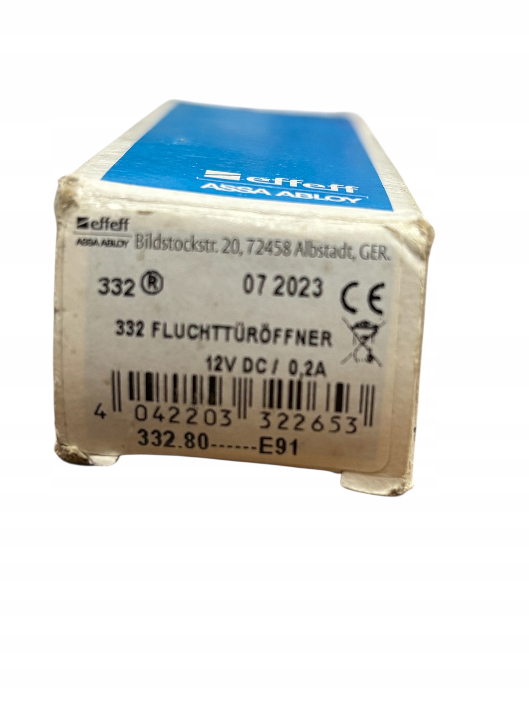 Mechanizm otwierania drzwi ewakuacyjnych opcjonalnie ze stalym zatrzaskiem 332.80------E91 – Assa Abloy effeff – 4042203322653: Bezpieczny elektrozaczep 332.80, Bezpieczny elektrozaczep 332® firmy effeff, specjalnie zaprojektowany do stosowania w zamykaniu drzwi na drogach ewakuacyjnych, jest najmniejszym elektrozaczepem na świecie dzięki niewielkim wymiarom montażowym., Kompaktowa konstrukcja elektrozaczep effeff 332® jest porównywalny z dostępnym na rynku standardowym elektrozaczepem, dzięki czemu gwarantowany jest szybki i nieskomplikowany montaż w szerokiej gamie profili i ościeżnic.Kolejną zaletą jest bezpieczne odblokowanie pod napięciem wstępnym do 3000N przy 100% siły trzymania w przypadku przerwy w dostawie prądu. W ten sposób zaczep do drzwi ewakuacyjnych zapewnia bezpieczną sekwencję działania nawet w przypadku drzwi bez wymagań dotyczących drogi ewakuacyjnej, gdzie należy spodziewać się nacisku na zapadkę. Dzięki symetrycznej konstrukcji mechanizm otwierania drzwi może być używany uniwersalnie DIN w lewo i DIN w prawo, a także w poziomie., Certyfikat badania (MPA Dortmund) 120002494.10, mechanizm otwierania drzwi ewakuacyjnych effeff, w kompaktowej konstrukcji, w wersji na prąd spoczynkowy, bezpieczne odblokowanie przy zasilaniu jest wyłączany, nawet przy napięciu wstępnym zapadki do 3000 N (ok. 300 kp), wytrzymałość na włamanie 3000 N, ze zintegrowanym stykiem zwrotnym (drzwi otwarte/zamknięte), jako bezpotencjałowe zestyki przełączne, ze stykiem twornika (zablokowany/zamknięty) odblokowany), jako bariera świetlna odpowiednia do sterowania drzwiami ewakuacyjnymi effeff, wszystkie połączenia są prowadzone na listwie zaciskowej (1-6), z regulowanym i blokowanym zatrzaskiem, małe wymiary 78 x 20 x 28 mm, napięcie znamionowe: 12 V GS, nominalne prąd: 185 mA, rezystancja znamionowa: 65,6 omów, bez płytki wybijającej, uniwersalny, zatrzask promieniowy, kompaktowa konstrukcja, min 2000 N , maks. 3000 N siła trzymania wg prEN 13637, odblokowanie pod napięciem wstępnym przy 100% siły trzymania, bezpotencjałowy styk zwrotny i nieruchomy styk kotwiący*, uniwersalna pozycja montażu DL/DR i pozioma, niski pobór mocy, małe wymiary montażowe, regulowany zatrzask FaFix®: tor regulacji 4 mm dla rastra 0,5 mm, regulacja za pomocą rowków Fix® w obudowa, klapka sprzężenia zwrotnego porusza się wraz z elementem przykręcanym FaFix®, tzn. punkt zadziałania zawsze pozostaje ten sam, opcjonalnie z zatrzaskiem stałym, regulacja za pomocą rowków Fix w obudowie, w drzwiach przeciwpożarowych możliwość zastosowania tylko jako dodatkowy zamek , * Do pracy równoległej wymagany jest przekaźnik sprzęgający 7480., Styk twornika nie jest bezpotencjałowy. Obsługa elektrozaczepu z terminalami kontrolnymi effeff bez przekaźnika sprzęgającego jest możliwa bez wahania., 12 V, z FaFix®
