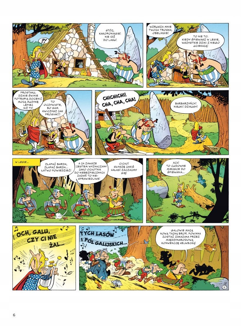 Juliusz Cezar otrzymuje od jednego z dowódców niezwykły podarunek - Kakofoniksa - słynnego galijskiego barda. Nieświadomy sytuacji bohater jest przekonany, że czekają go występy. Jednak Cezar nie okazuje zainteresowania muzycznym talentem Kakofoniksa i po stwierdzeniu, że ten nie nadaje się na gladiatora, postanawia rzucić go lwom na pożarcie w trakcie zbliżających się Igrzysk. Na ratunek spieszą mu Asteriks i Obeliks i, by dostać się do Koloseum, w którym ma być stracony ich towarzysz, postanawiają zostać gladiatorami.