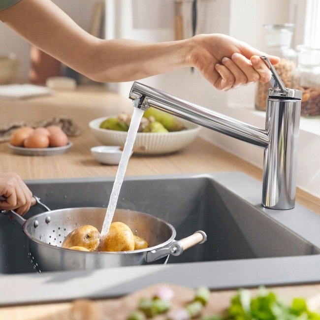 Nowoczesny design baterii kuchennej sprawi, że stanie się ona ozdobą każdej kuchni. Wysoki połysk lśniącego, łatwego w czyszczeniu chromowanego wykończenia zawsze robi wrażenie. Bateria kuchenna Zesis M33 zapewnia również bezpieczeństwo podczas użytkowania, umożliwiając ustawienie funkcji ograniczenia temperatury chroniącej przed zbyt gorącą wodą.