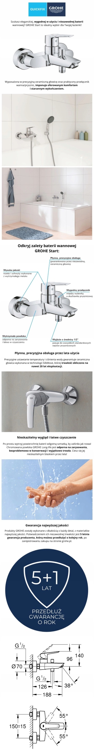 ✅Opis produktu:Bateria wannowa Start QuickFix chrom, marki Grohe