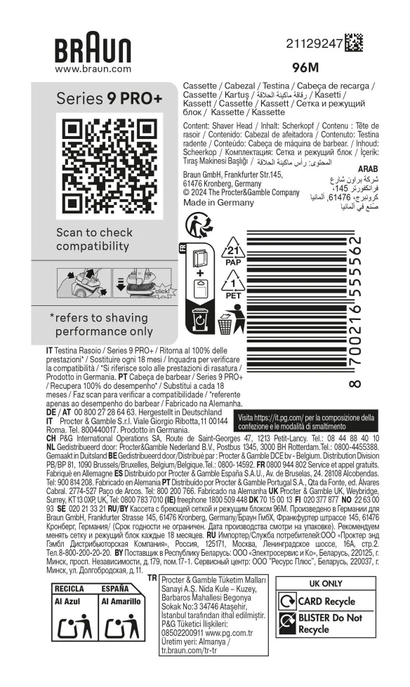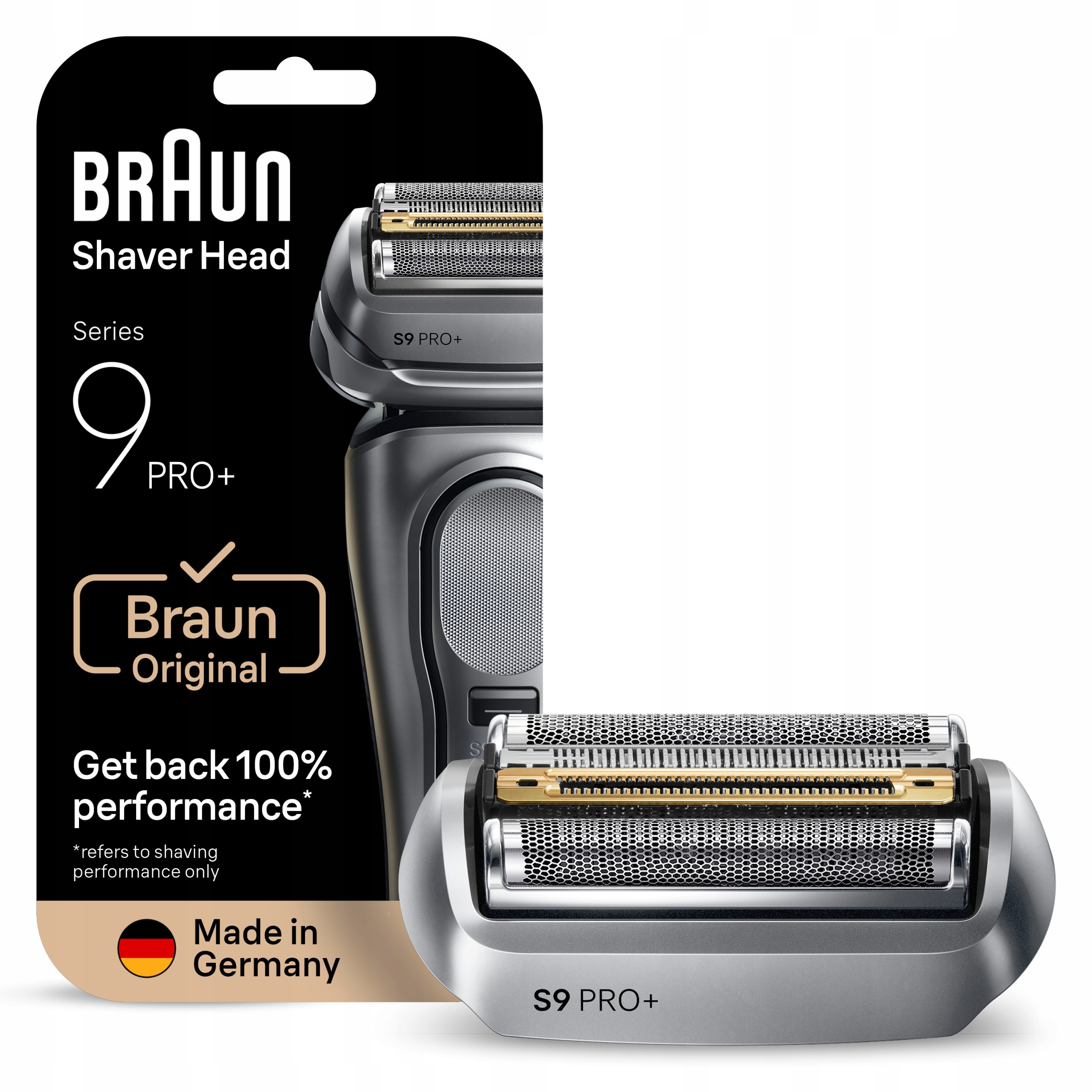 ORYGINALNA część zamienna marki Braun: Wyprodukowano w Niemczech. Używaj wyłącznie oryginalnych głowic zamiennych Braun, aby zapobiec uszkodzeniu golarki