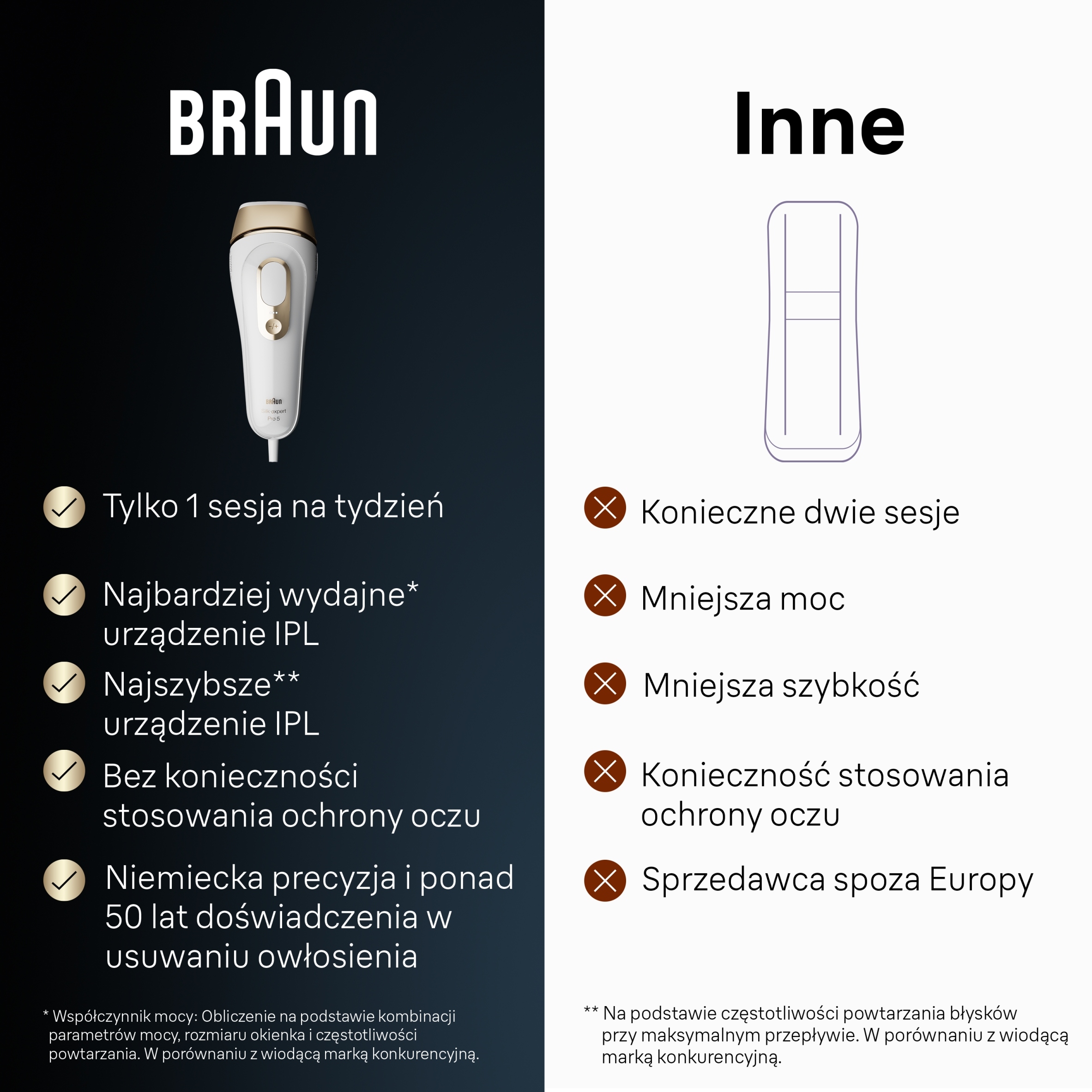Najszybszy depilator IPL marki Braun, który zapewnia mniej pominiętych miejsc. Błyska nawet 125 razy na minutę, zapewniając bezproblemowy zabieg i pozwalając dotrzeć do większej ilości miejsc na skórze