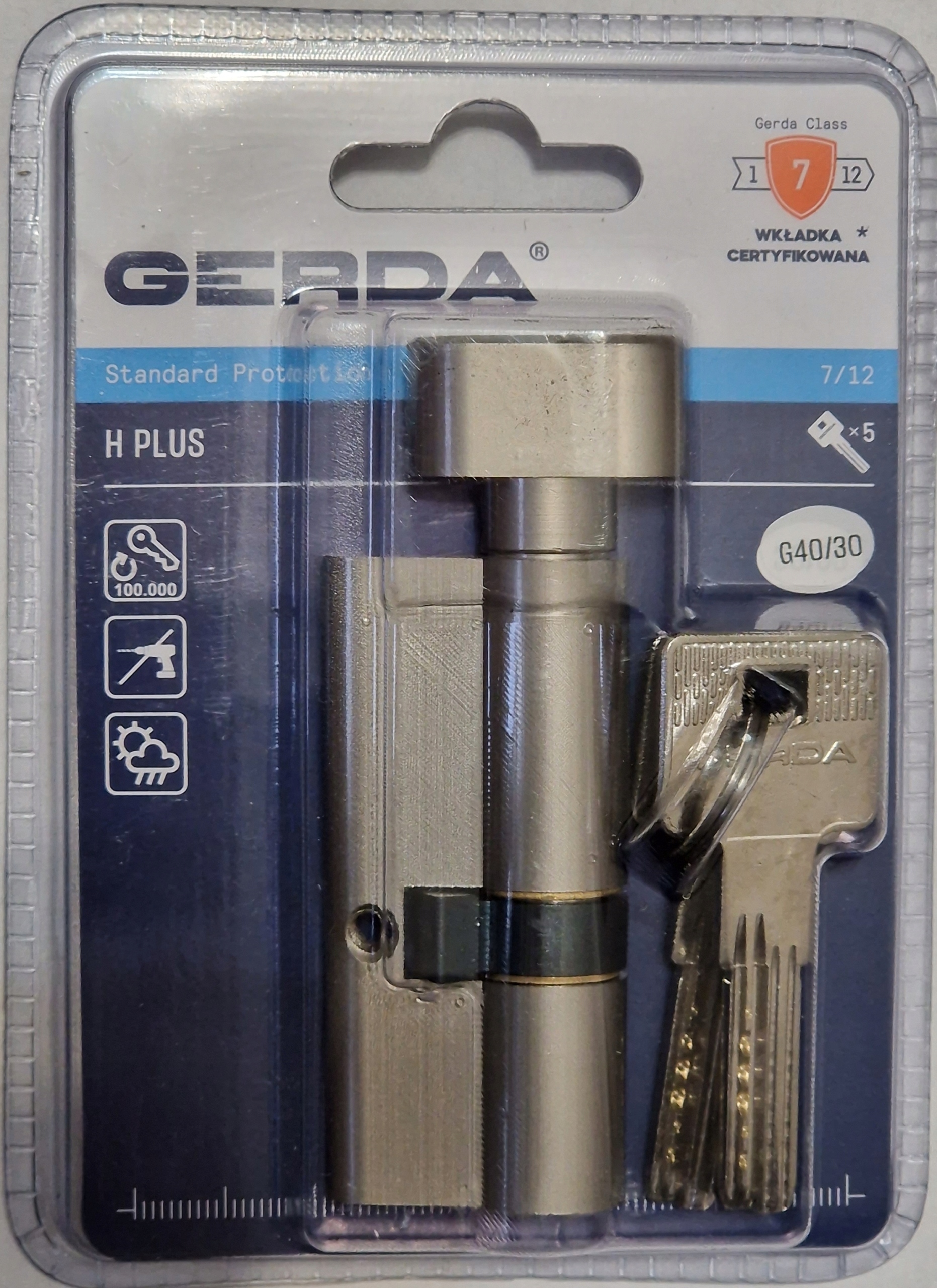 Wkładka z Gałką GERDA H PLUS 40G/30 Nikiel Satyna