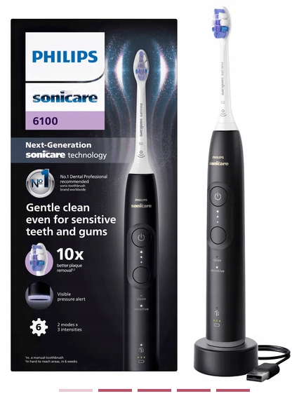 Philips Sonicare 6100 jest wyposażona w technologię Sonicare nowej generacji. Podczas szczotkowania innowacyjny system magnetyczny szczoteczki do zębów dostosowuje siłę szczoteczki podczas każdej sesji czyszczenia, zapewniając optymalną wydajność wynoszącą dokładnie 62 000 pociągnięć szczoteczką na minutę, nawet w trudno dostępnych miejscach.