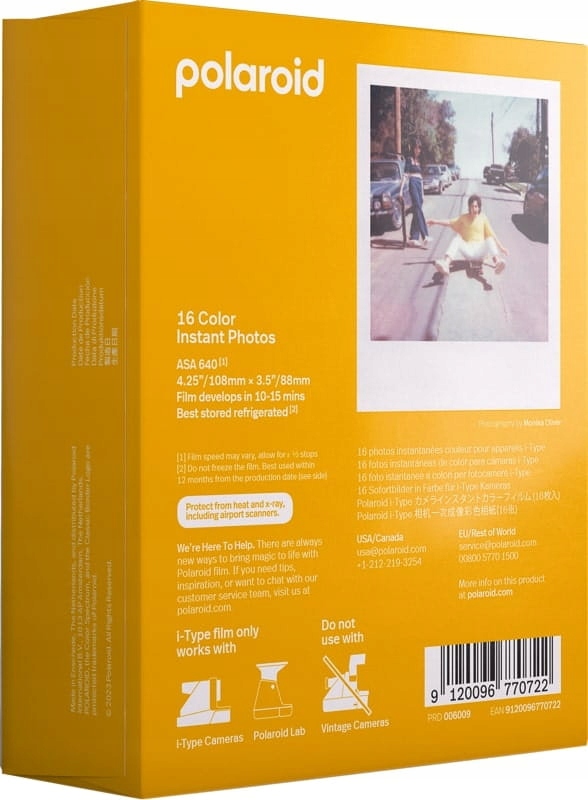 Dwupak z 2x8 natychmiastowymi kolorowymi zdjęciami z białymi ramkami. Do użytku w aparatach typu I. Obrazy zaczynają pojawiać się w ciągu 2 minut. Pełny efekt zajmuje 10-15 minut. Film typu I jest zoptymalizowany dla aparatów typu I; I-1 i OneStep2. Jest tańszy niż standardowy film, ponieważ nie zawiera baterii. Film typu I wykorzystuje najnowszą chemię do tworzenia zdjęć o bogatych, dobrze zrównoważonych tonach i tych miękkich teksturach, które sprawiają, że fotografia analogowa jest tak charakterystyczna. Kultowy styl białej ramki jest fragmentem błyskawicznej historii.