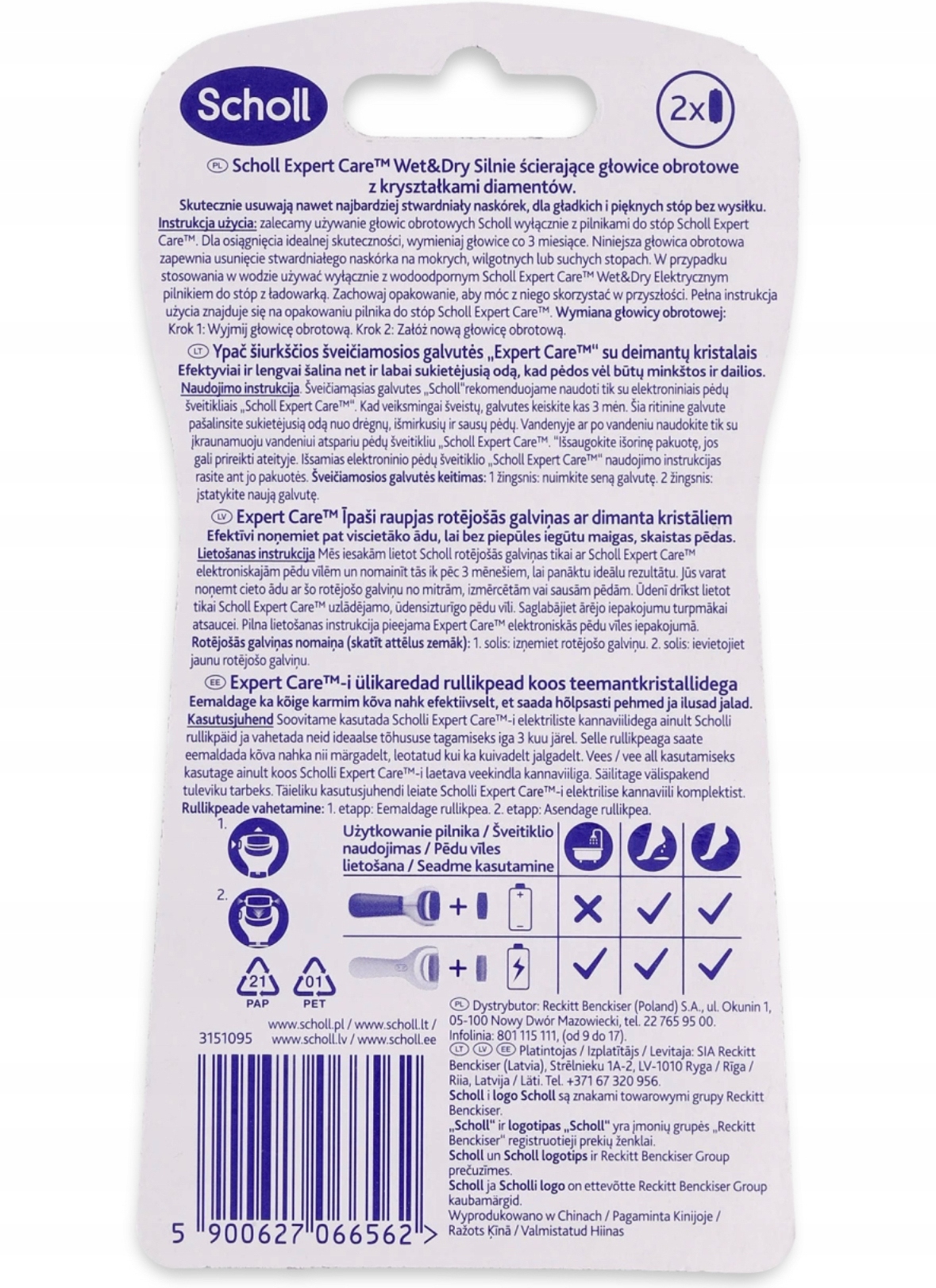Zestaw dwóch wymiennych głowic obrotowych do pielęgnacji stóp na mokro i sucho Scholl Velvet Smooth.