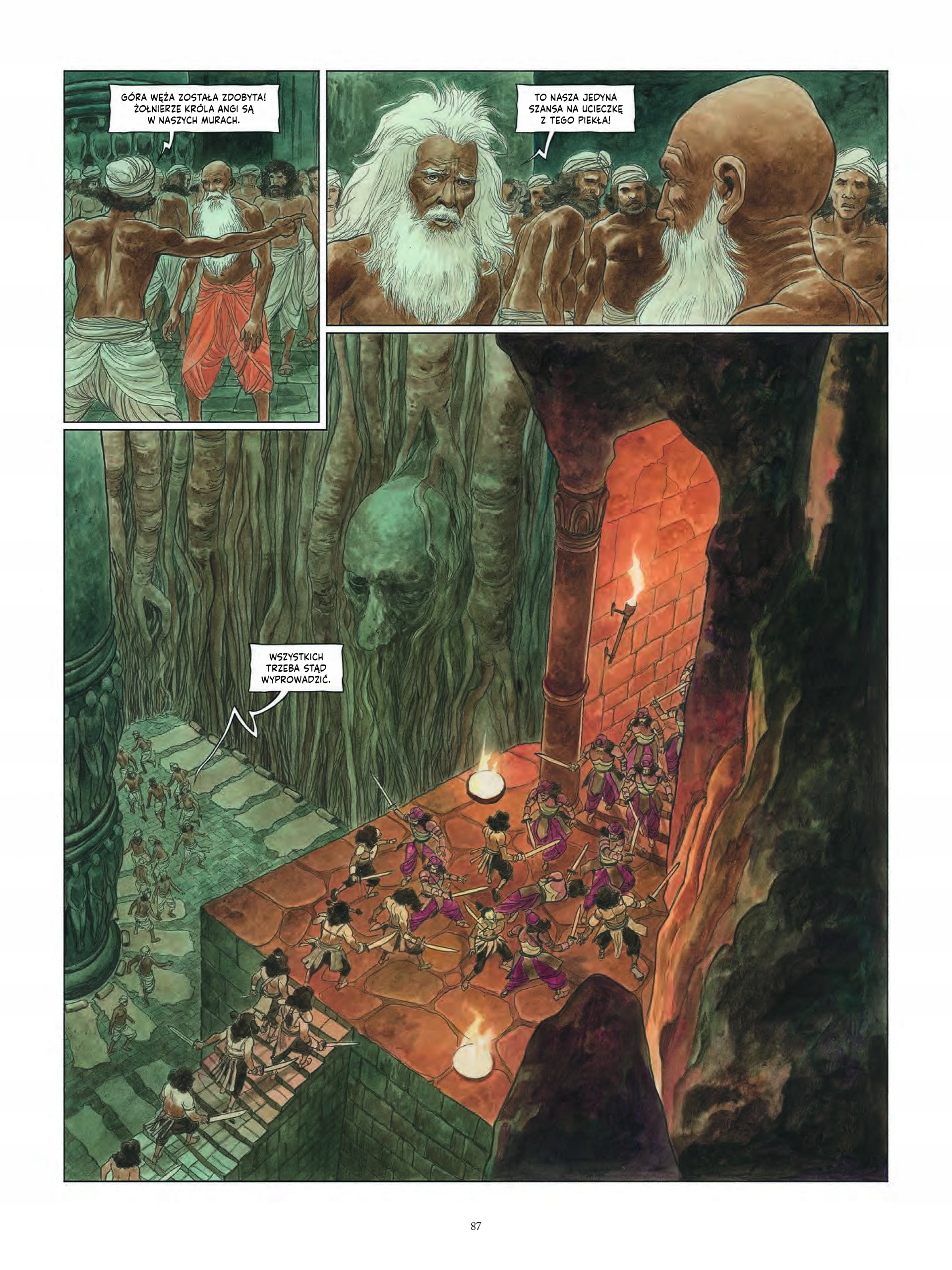 Mimo że tytuł tej opowieści każdemu zapewne kojarzy się jednoznacznie, jest to przede wszystkim historia pewnej zemsty. Zemsty młodego człowieka o imieniu Baswaradź na kobiecie powszechnie poważanej, pięknej, choć okrutnej, której obawiają się nawet królowie – niejakiej Bhajrawi, zwanej Szkarłatną Królową. Jedyną wadą tej wojowniczki, gotowej rzucić wyzwanie nawet bogom, jest jej niepohamowany popęd seksualny… A zatem któż mógłby pomóc Baswaradziowi w jego planach lepiej niż twórca owej księgi nad księgami – Kamasutry?