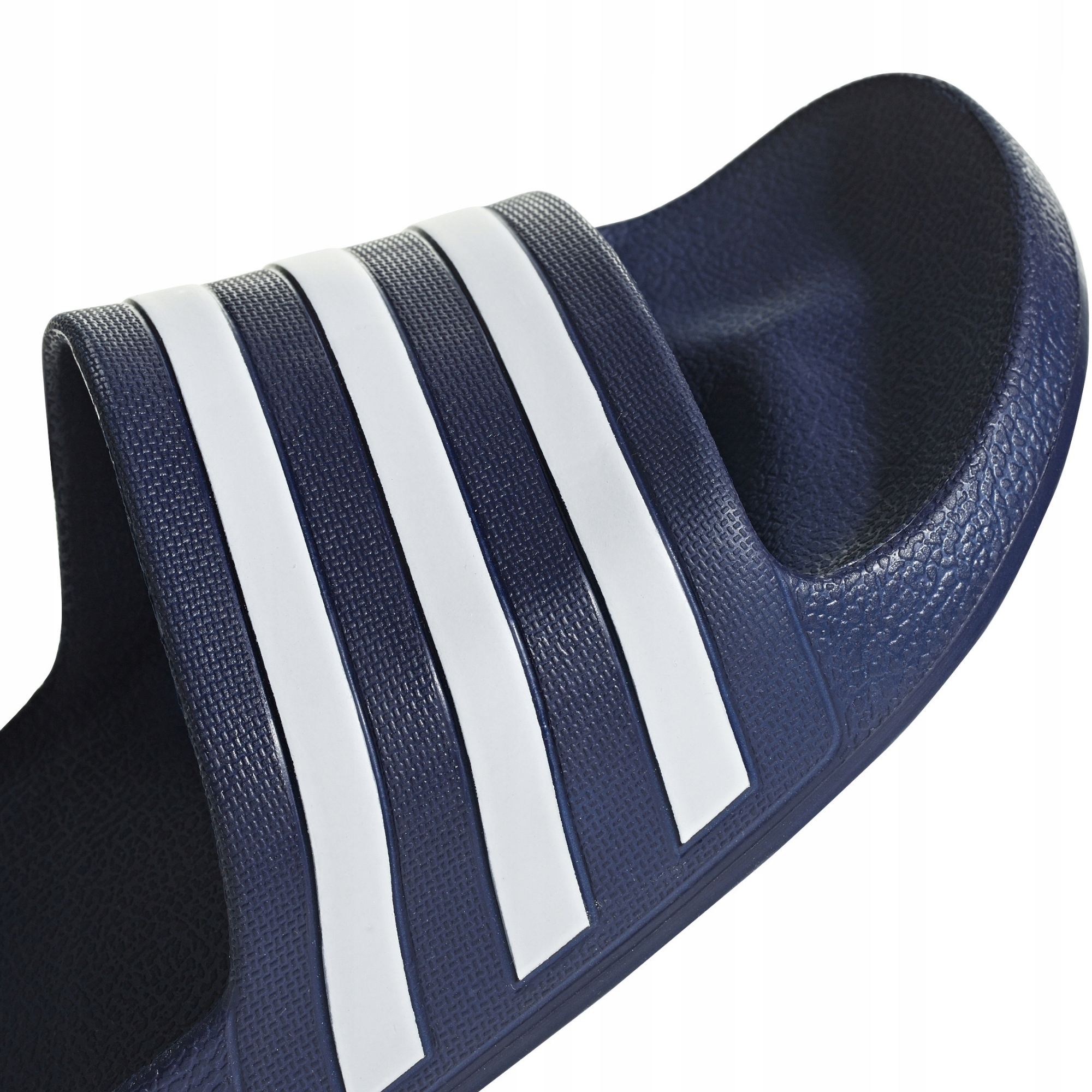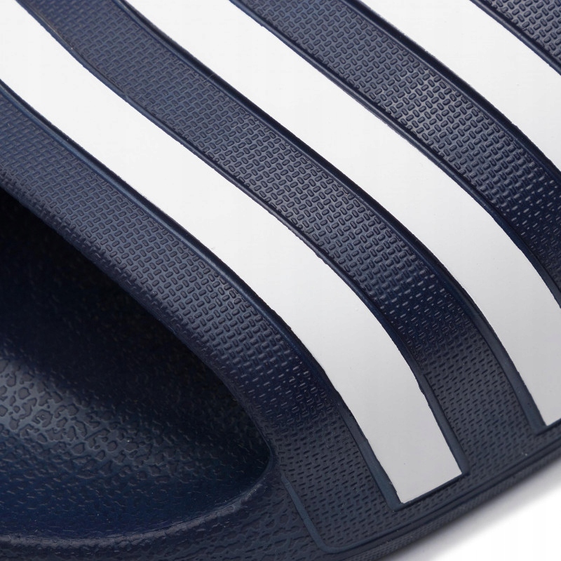 Kultowe klapki męskie adidas Adilette Aqua to synononim komfortu i poczucie pewności w upalne dni. Wykonane z trwałego materiału, wsparte zostały pianką Cloudfoam w podeszwie która gwarantuje wygodę. Granatowe klapki męskie adidas Adilette Aqua przełamane zostały białymi paskami. Idealnie sprawdzą się również na basenie, na plaży czy pod prysznicem.