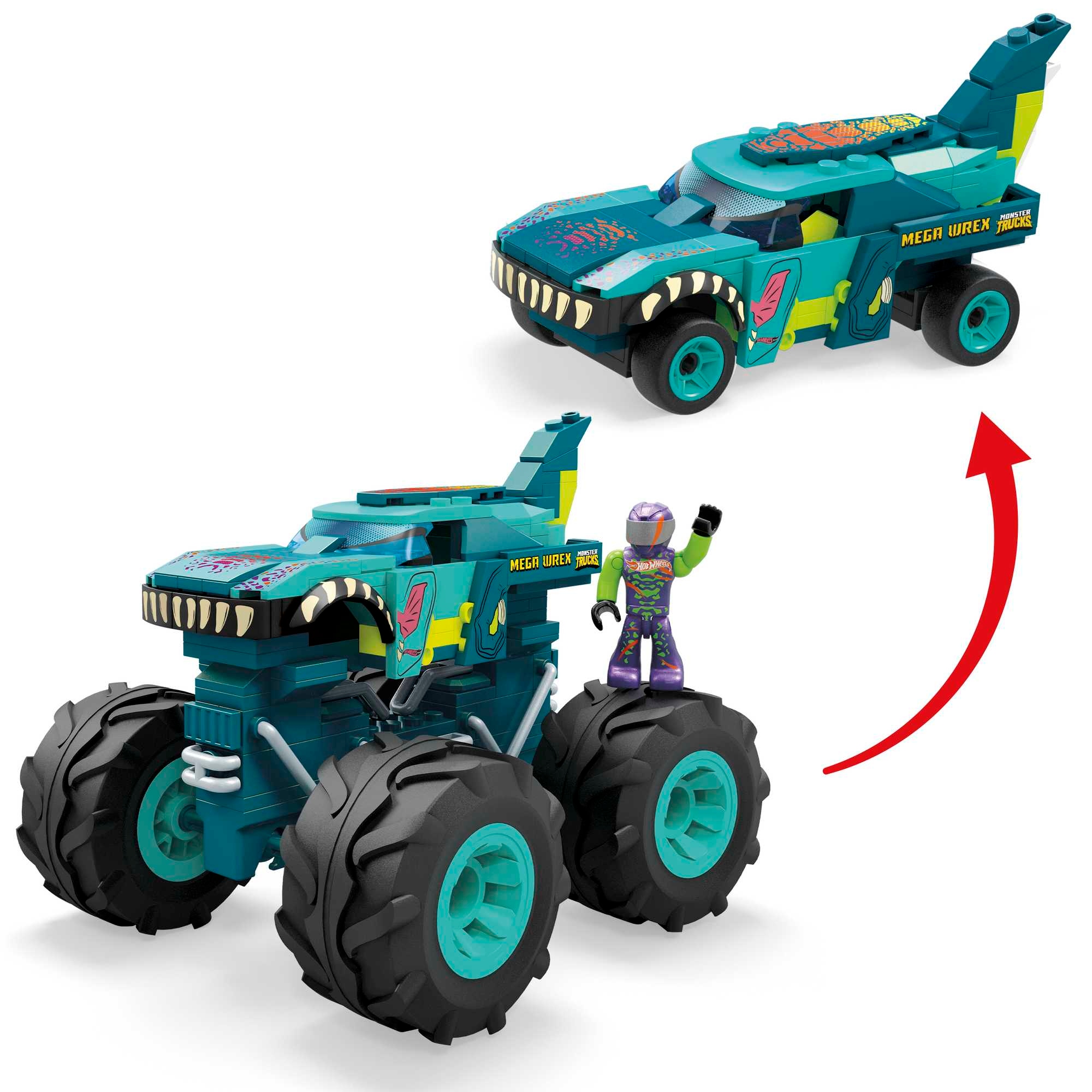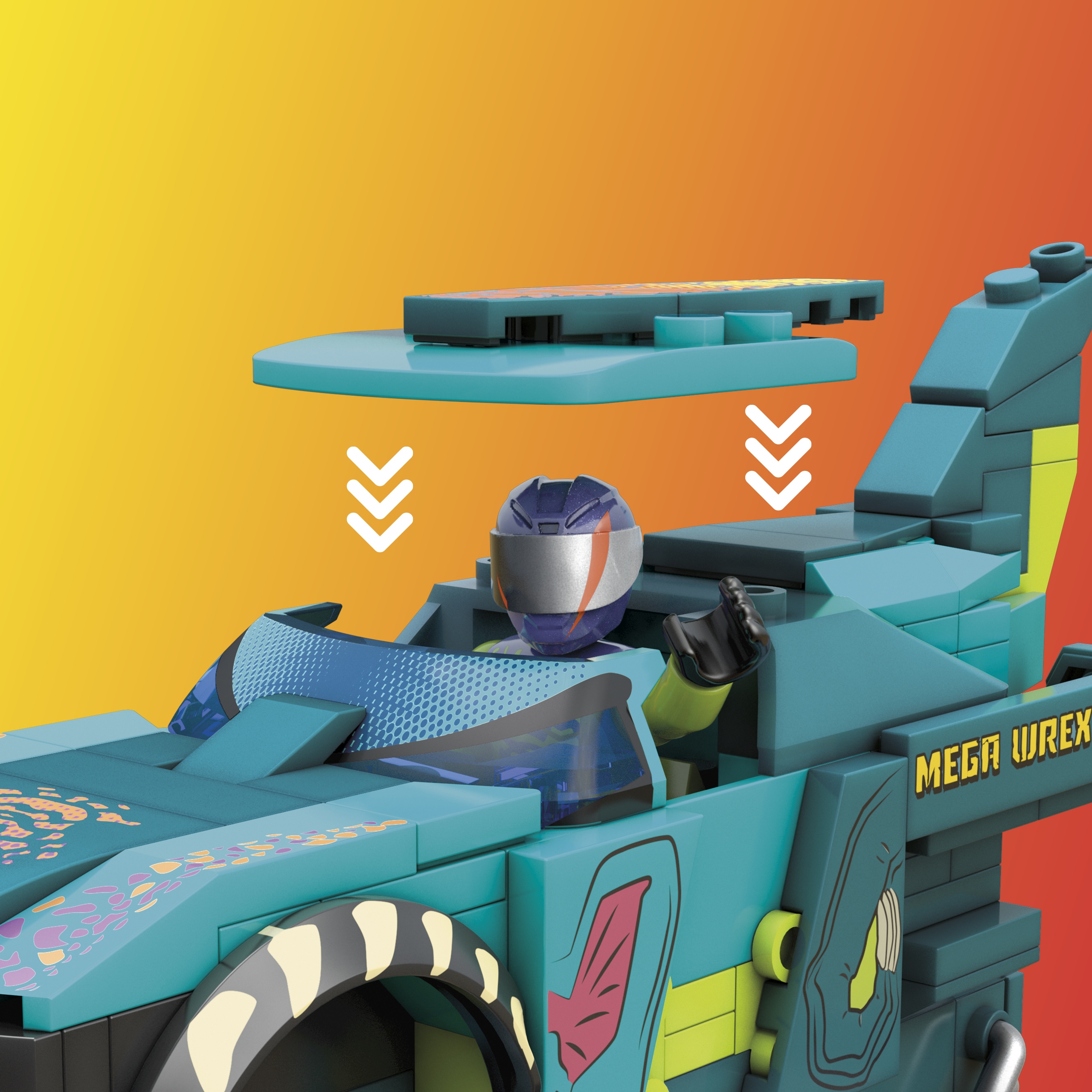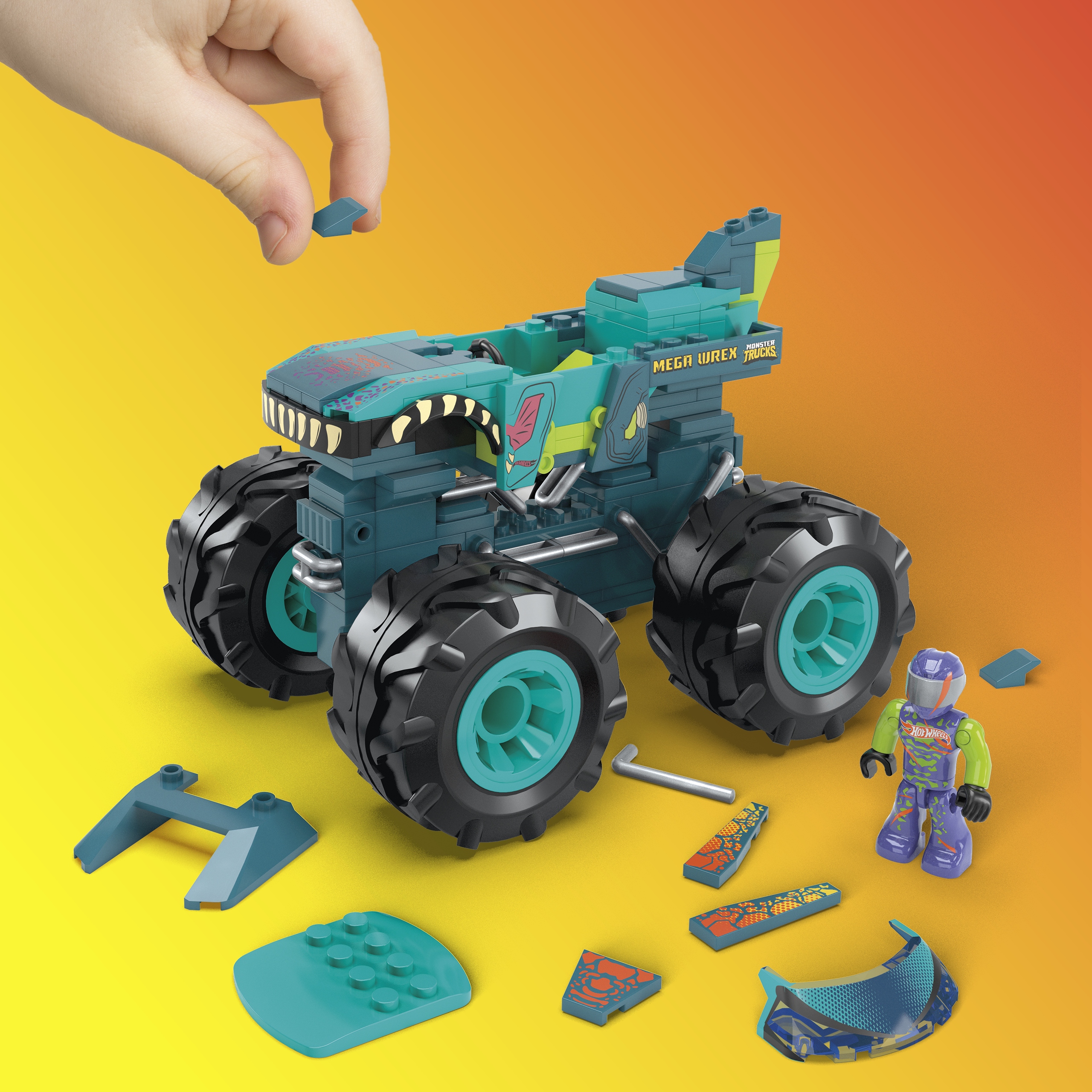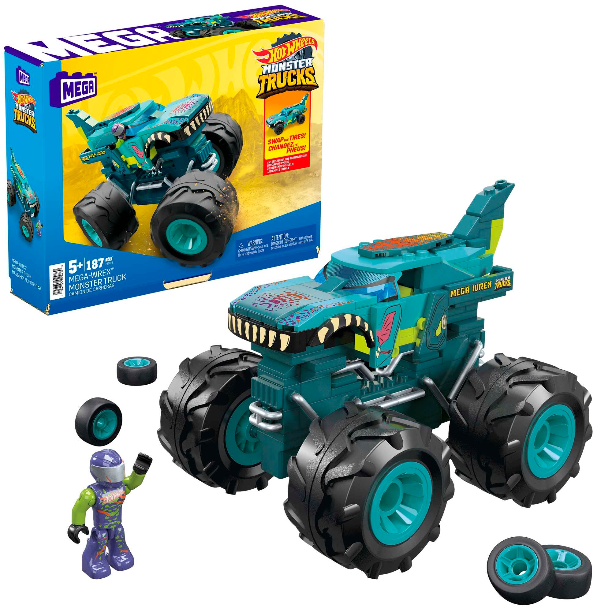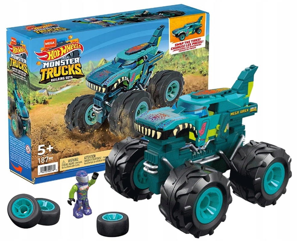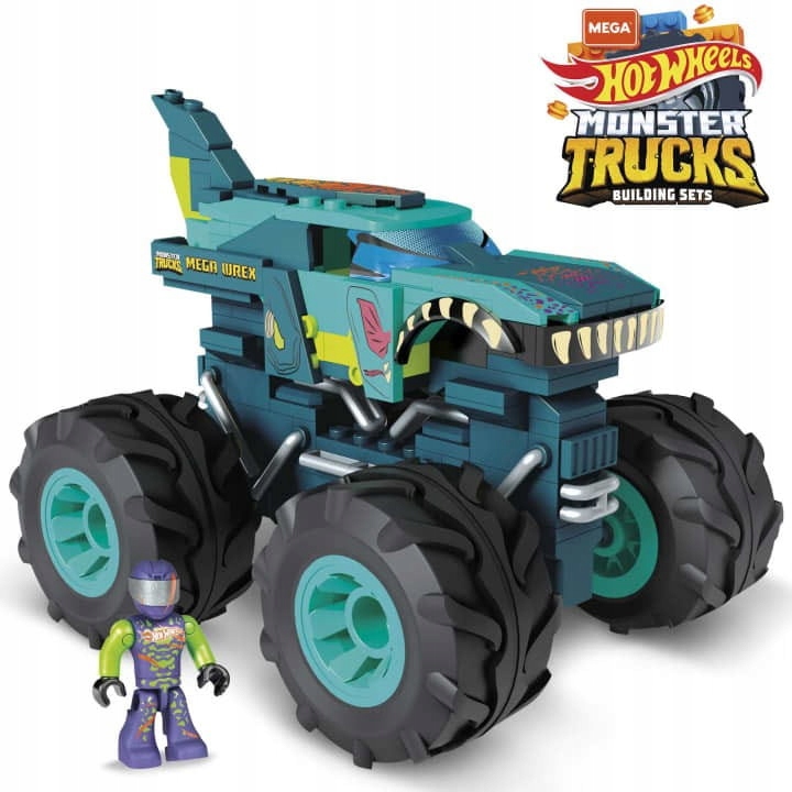 Przygotuj się na szaloną akcję z zestawem klocków Hot Wheels Monster Trucks Mega Wrex Pojazd do zbudowania, inspirowanym oryginalnym modelem Monster Trucka. Pojazd ma charakterystyczne detale w stylu Hot Wheels, ogromne koła i nadwozie w kształcie przypominającej głowę dinozaura - z zębami! Posadź dołączoną mikrofigurkę na miejscu kierowcy i ruszaj ku przygodzie. Możesz też łączyć ten zestaw z innymi zestawami konstrukcyjnymi Mega Hot Wheels, aby stworzyć własne niezwykłe Monster Trucki.