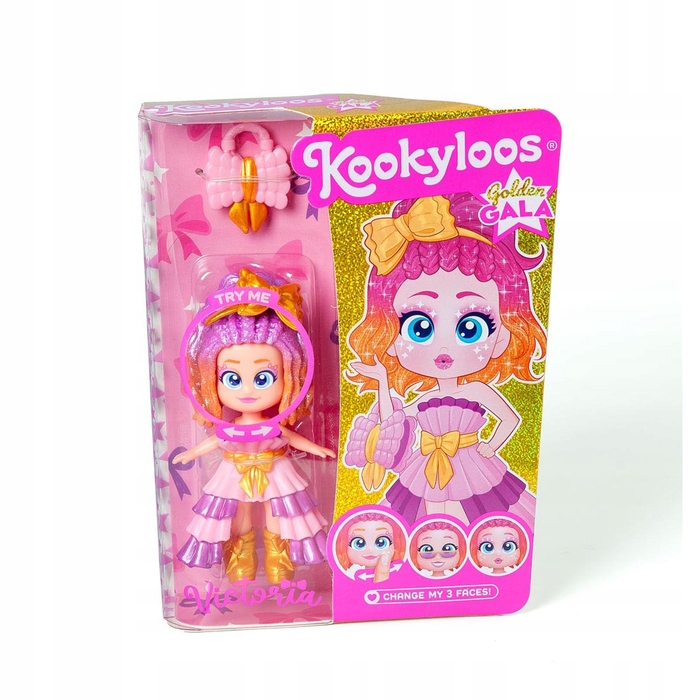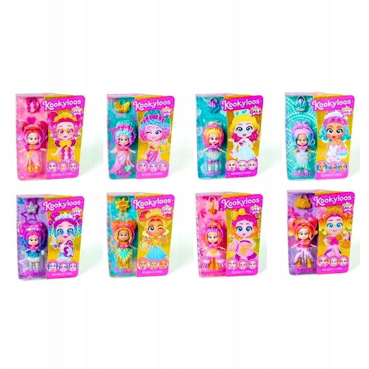 Kookyloos zostały zaproszone na Złotą Galę - modowe wydarzenie roku! To idealna okazja dla przyjaciółek na wspólnie spotkanie, świetną zabawę i przeżycie niezapomnianych chwil! KookyLoos mają nowe supermodne stroje, nowe buzie i modne fryzury. Odkryj między innymi inspirowany motylem strój Lily, romantyczny styl Valentiny lub syreni wygląd Pearl.