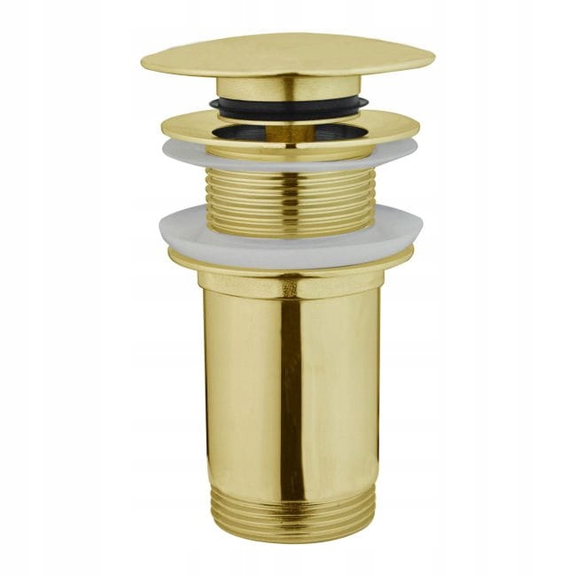 Nowoczesny korek klik-klak do umywalek bez przelewu złoty zamontujesz łatwo i szybko – już po chwili będziesz mógł korzystać ze skutecznego zamknięcia odpływu. Aby ponownie otworzyć przepływ wody, wystarczy nacisnąć korek drugi raz. Ozdobny złoty kolor mosiądzu równoważony jest przez prosty i nowoczesny design korka. To połączenie sprawdza się zarówno w bardzo dekoracyjnych wnętrzach, jak i jako ciekawy akcent w minimalistycznym wystroju. Korek klik-klak do umywalek bez przelewu złoty oprócz atrakcyjnego wyglądu ma również wiele praktycznych zalet. Wysokiej jakości stop metali wykorzystany do produkcji tego modelu jest odporny na działanie wysokiej temperatury i środków chemicznych.