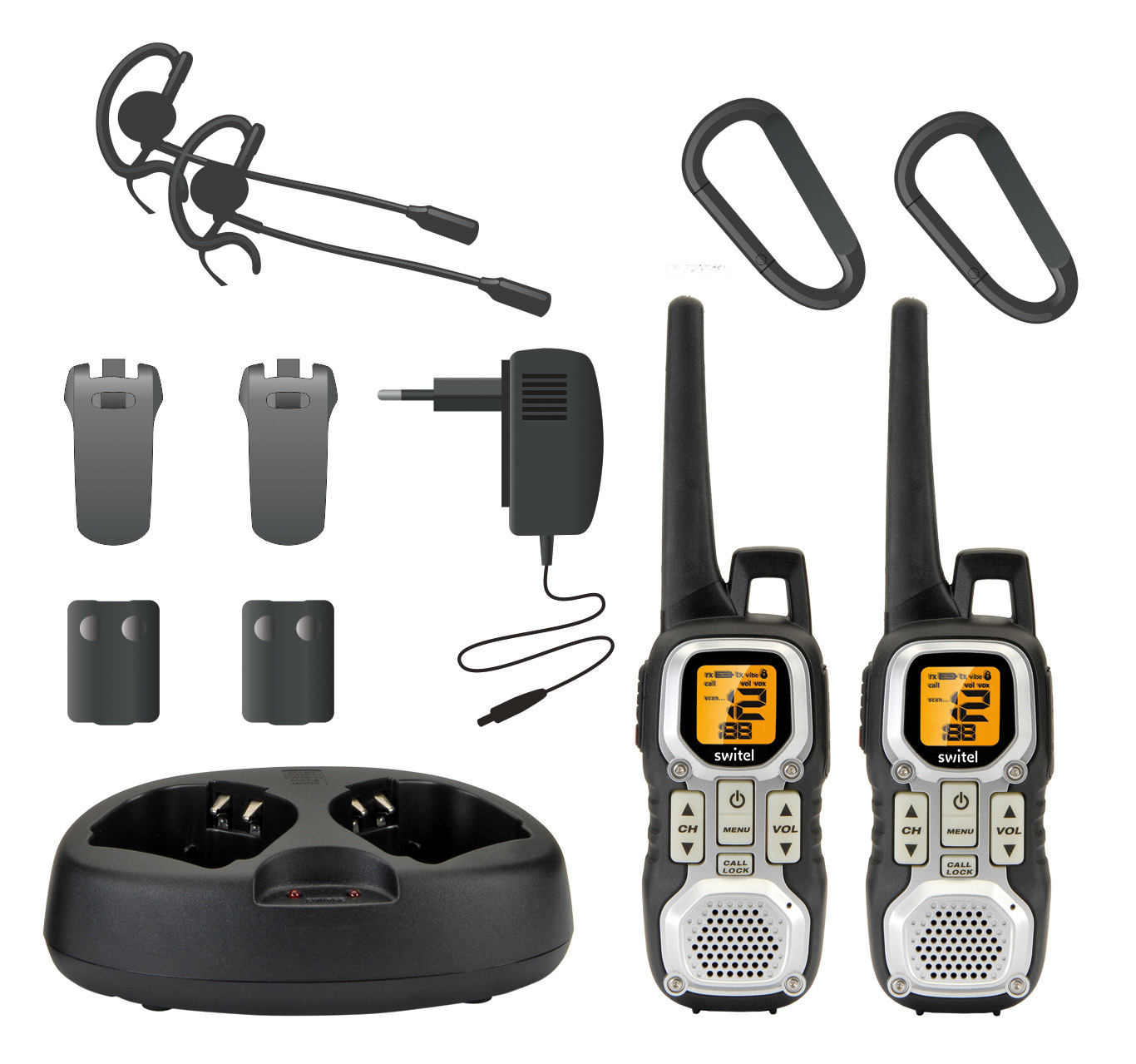 Profesjonalny zestaw walkie-talkie z słuchawkami odpornymi na zachlapanie wodą oraz z dodatkowymi akcesoriami