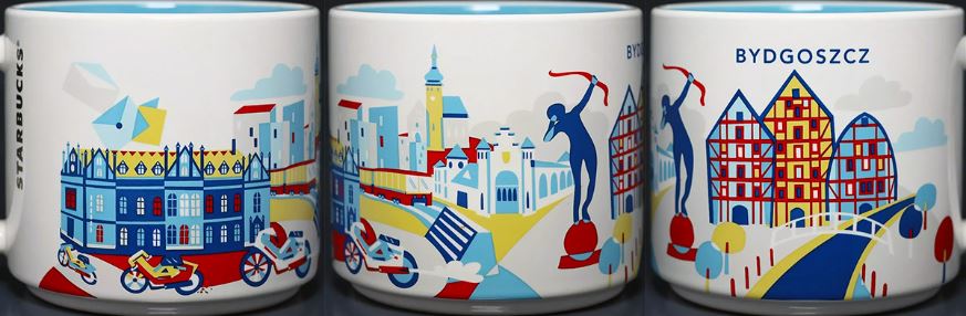 Wzór Bydgoszcz z "You are here collection" zapakowany w oryginalne, eleganckie pudełko Starbucks.