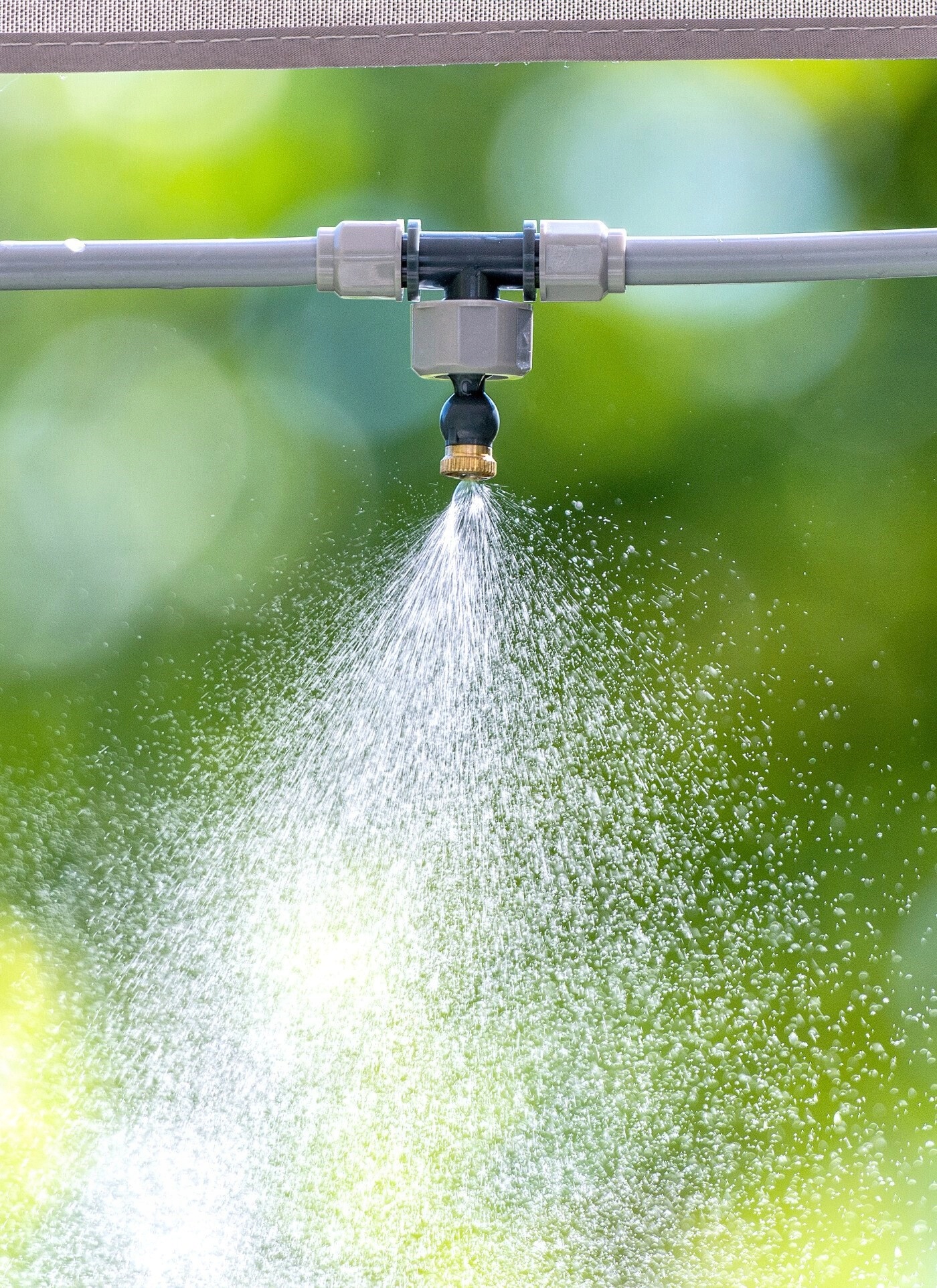 Zestaw idealnie nadaje sie do ochłody na tarasie jak i również bardzo dobrze sprawdza sie przy nawadnianiu roślin w tunelach, gruncie na balkonach i nie dużych działkach.