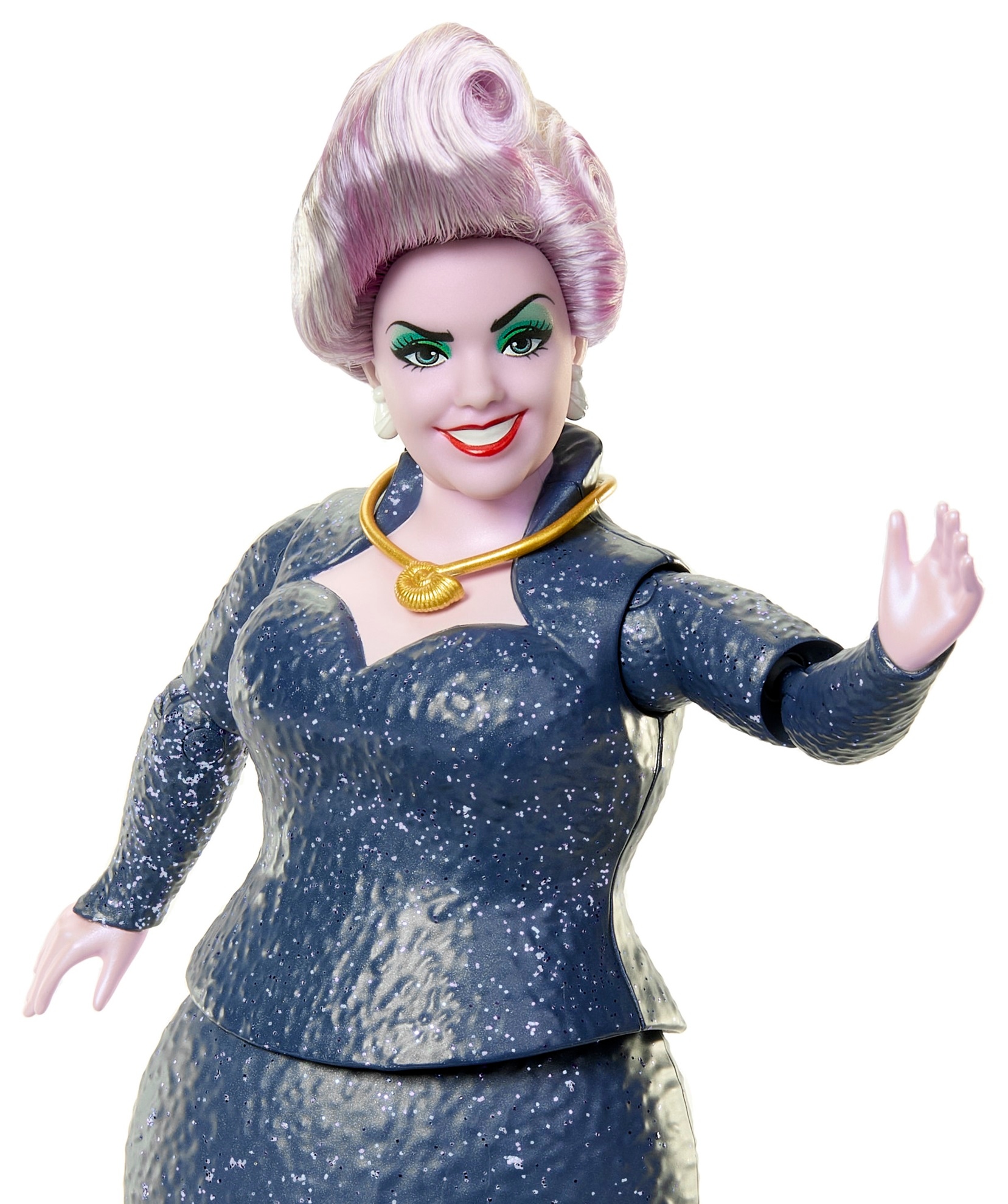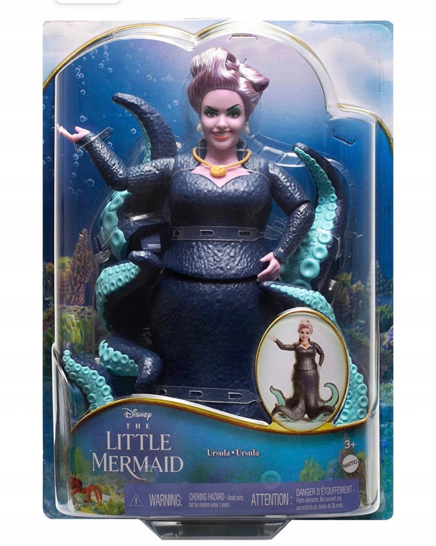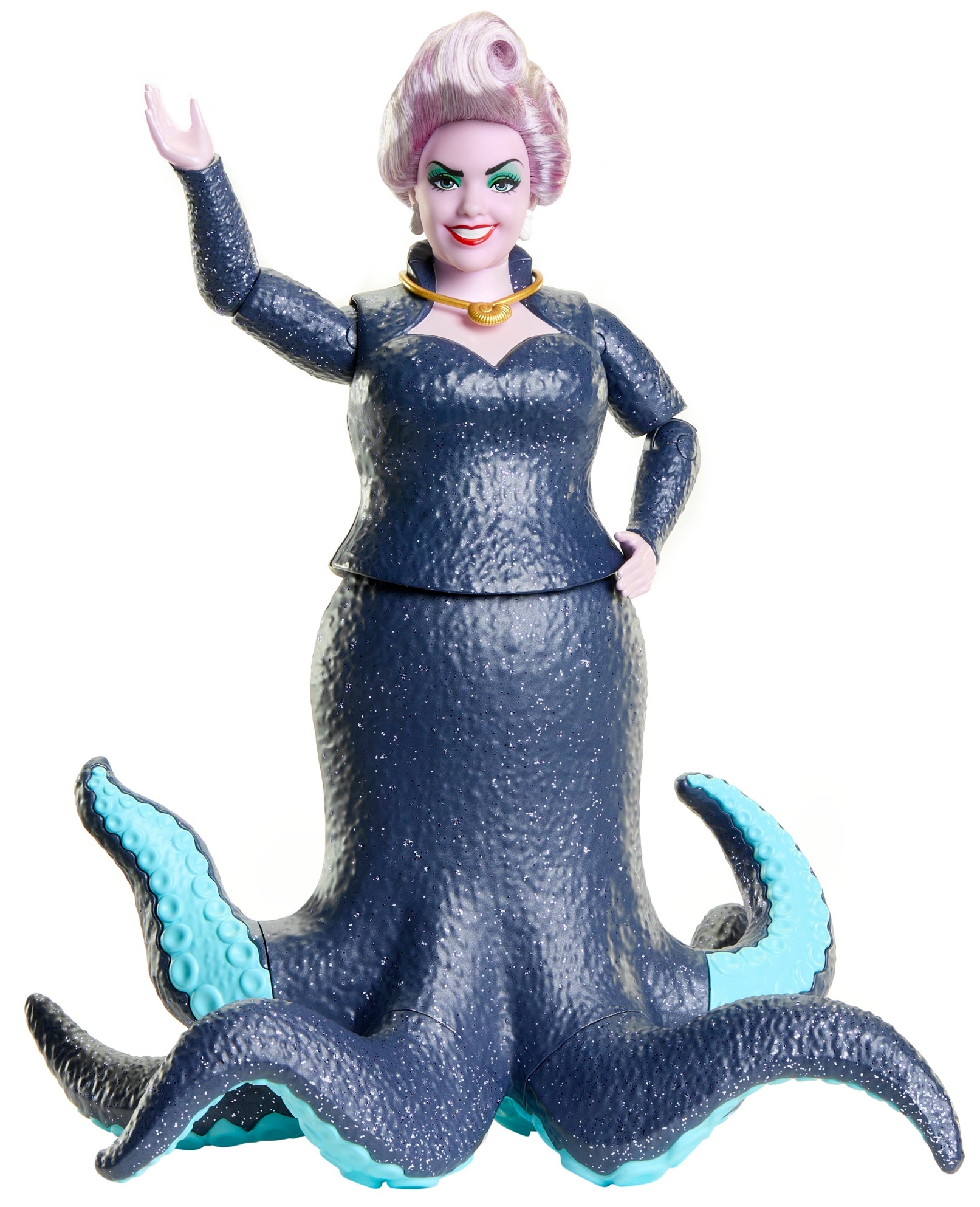 Poznaj potężnego złoczyńcę z Małej Syrenki Disneya! Ruchoma lalka Ursula jest pokazana ze swoimi charakterystycznymi mackami z błyszczącymi detalami i ma lawendowe upięte włosy, które ułatwiają stylizację. Fani mogą zebrać wszystkie lalki Małej Syrenki i tworzyć własne przygody nad lub pod falami! Każda lalka jest sprzedawana osobno, w zależności od dostępności. Kolory i zdobienia mogą się różnić.