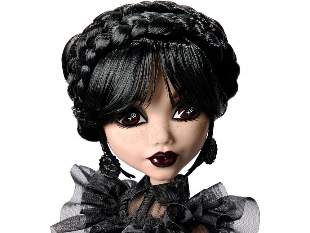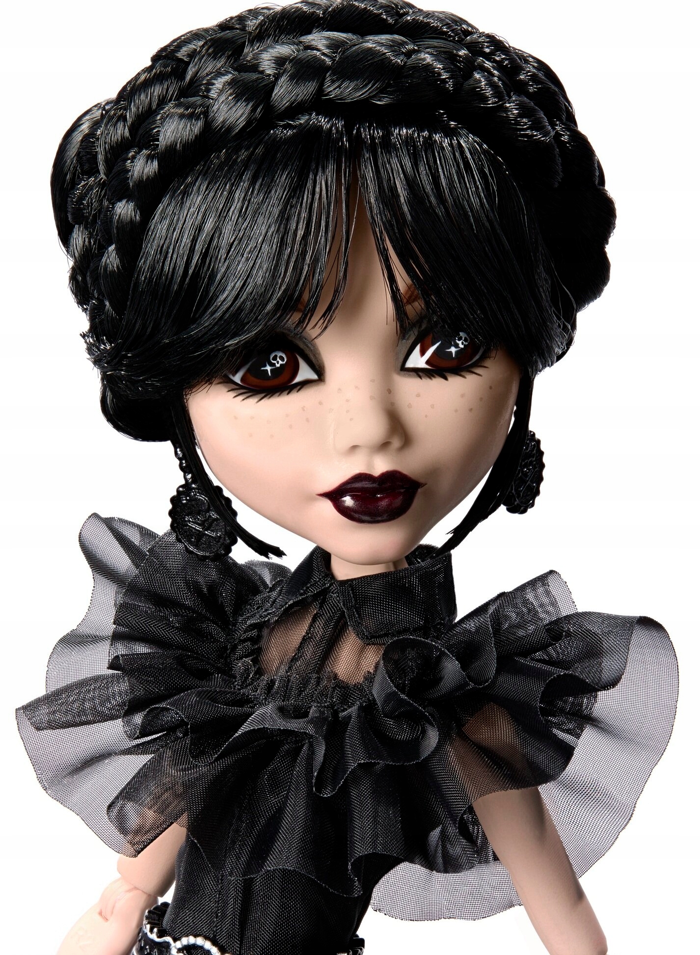 Twórcy Monster High i „Wednesday” wspólnie przygotowali upiornie piękną linię lalek inspirowaną hitowym serialem i główną bohaterką o nietuzinkowej osobowości – Wednesday Addams. Ta lalka kolekcjonerska Wednesday na balu Rave'N wygląda przepięknie w czarnej gotyckiej sukni wzorowanej na kultowej scenie ze szkolnego balu. Falbaniasta spódnica aż prosi, by zawirować w niej na parkiecie i zachwycić szalonym, magnetyzującym układem tanecznym.
