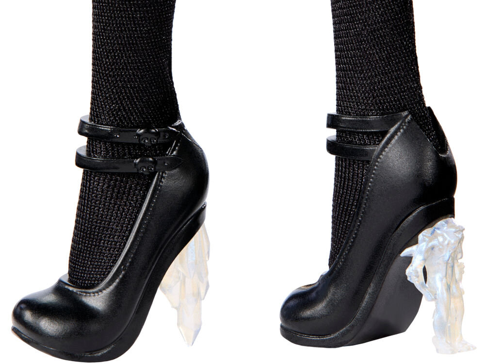 Dzięki niesamowitym bucikom lalka jest gotowa przetańczyć całą noc pełną strasznie dobrej zabawy. Detale sopli lodu i yeti na butach są inspirowane motywem przewodnim balu: połączeniem kryzysu klimatycznego i prehistorycznych masowych wymarć gatunków.