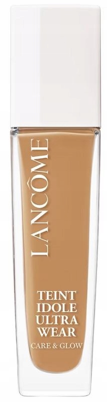 Dzięki innowacyjnej technologii Neo-Glow, która łączy się ze skórą, podkład Teint Idole Ultra Wear Care & Glow naturalnie rozświetla rysy twarzy, zapewniając efekt świeżości i zdrowego blasku przez 24 godziny. Jego naturalne krycie z efektem rozmycia ujednolica cerę i koryguje jej niedoskonałości przez cały dzień dzięki długotrwałemu utrwaleniu bez przenoszenia.