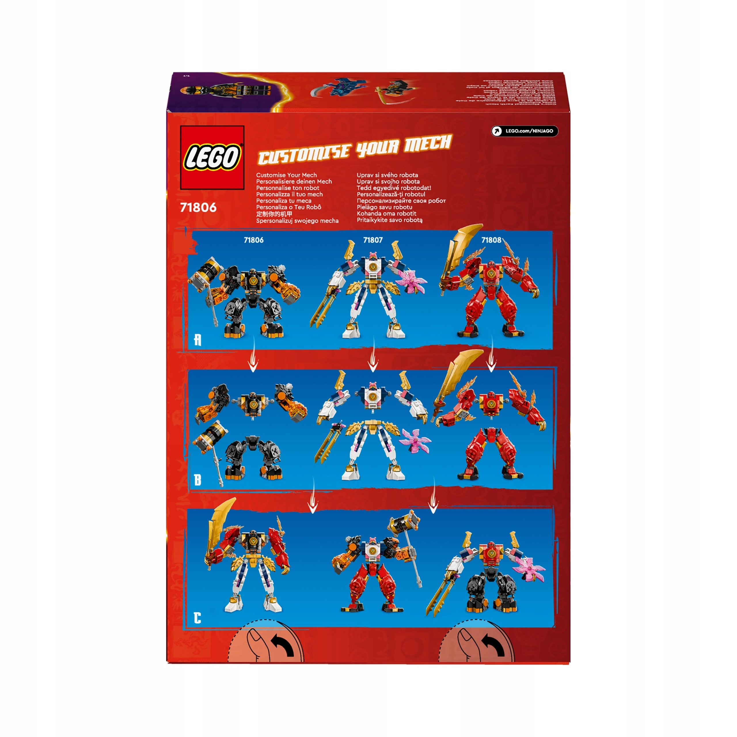 Pierwszy w historii mech do przebudowywania pozwala dzieciom zbudować własnego mecha! Jego odłączane nogi, ręce i tułów można połączyć z częściami dwóch innych mechów: Mecha żywiołu technologii Sory (71807) i Mecha żywiołu ziemi Cole’a (71808) (sprzedawanych osobno). Mieszanie i dopasowywanie części może zapewnić dzieciom wiele godzin świetnej zabawy, podczas której stworzą unikatową figurkę.