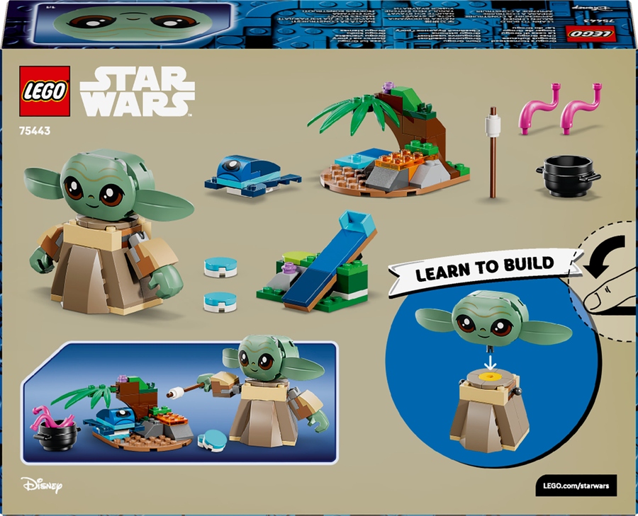 Spędź czas z Grogu w jego domu. Ustaw głowę, ramiona i dłonie uroczej postaci. Użyj katapulty, aby żaba z Sorgan wykonała skok! Postaw garnek na kominku, aby ugotować macki. Pomóż Grogu upiec piankę nad ogniskiem. A jeśli Grogu nadal jest głodny, sięgnij po niebieskiego makaronika!Interaktywna zabawka dla chłopca lub dziewczynki — dzieci umieszczą żabę z Sorgan na katapulcie i wykonają spektakularny skokPrezent dla 4-latka — ten zestaw z serialu \"Star Wars: The Mandalorian\" to uroczy, niewielki prezent LEGO dla chłopców, dziewczynek i fanów w wieku od 4 latRozwój kreatywności — klocki LEGO Star Wars dla 4-latków i starszych dzieci wprowadzają dzieci w świat klocków konstrukcyjnych i filmowej serii \"Gwiezdne Wojny\"Zabawa dla całej rodziny — w pudełku są szczegółowe, ilustrowane instrukcje. Dostępne są także w aplikacji LEGO Builder, w której znajdują się cyfrowe narzędzia do wyświetlania modeluZabawka dla dzieci do zbudowania — klocki dla dzieci LEGO Star Wars Dom Grogu (75443) to urocza zabawka dla 4-latka, który uczy się budować i wymyślać własne przygody inspirowane 1. sezonem serialu \"Star Wars: The Mandalorian\"Ruchoma figurka Grogu — ten zestaw klocków dla 4-latka zawiera łatwą do zbudowania figurkę Grogu z ruchomą głowę, rękami i dłońmiFajne akcesoria — dzieci zbudują kominek z garnkiem na dwie macki, umieszczą patyk z pianką w dłoni Grogu LEGO i znajdą jeden z dwóch niebieskich makaroników w brzuszku Grogu