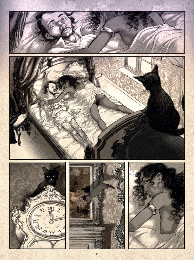Stygmatyzowana jako Mulatka, nazywana „Czarną Wenus”, musiała znosić wszystkie uprzedzenia owego mizoginistycznego i rasistowskiego stulecia. Jest to jednak przede wszystkim historia miłości, gorzkiej i zmysłowej, destrukcyjnej i świadomej, którą przedstawia nam Bernard Yslaire. Jego trafna, mistrzowsko dopracowana kreska ożywia powiew skandalu, surową seksualność poezji dążącej do absolutu. „Mademoiselle Baudelaire” to dojrzałe arcydzieło artysty.
