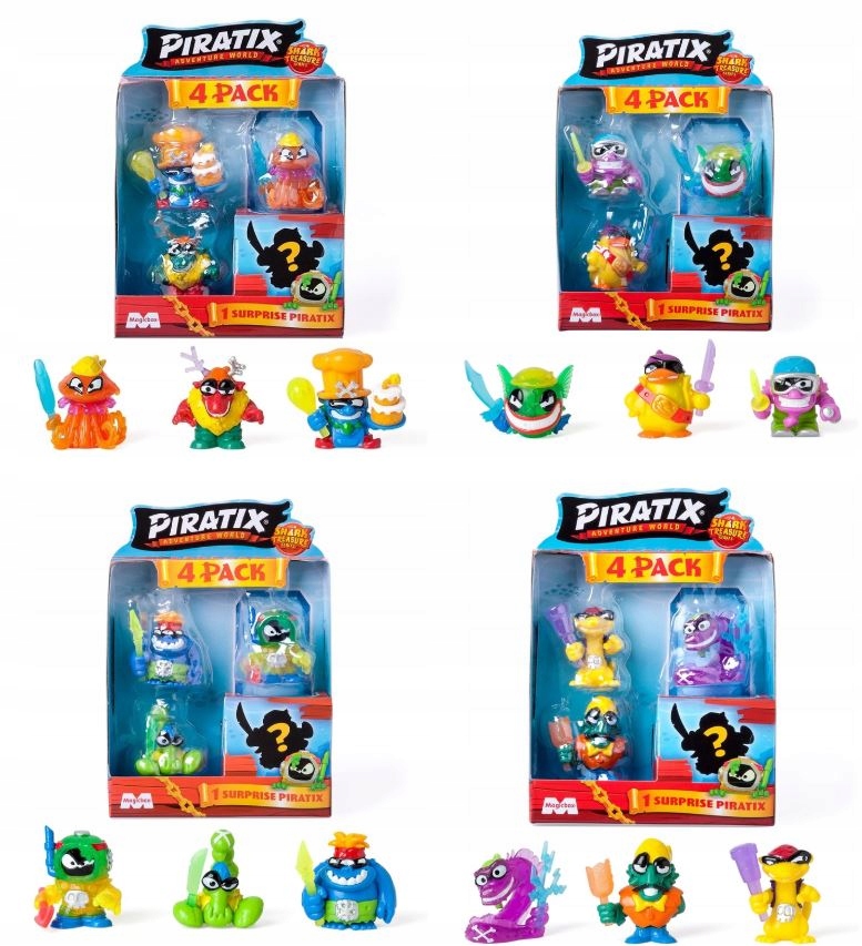 W skład zestawu wchodzą 4 figurki z czego jedna jest niespodzianką. Produkt występuję w kilku wariantach wzoru oraz koloru i wysyłany jest losowo nie ma możliwości wyboru konkretnego zestawu.
