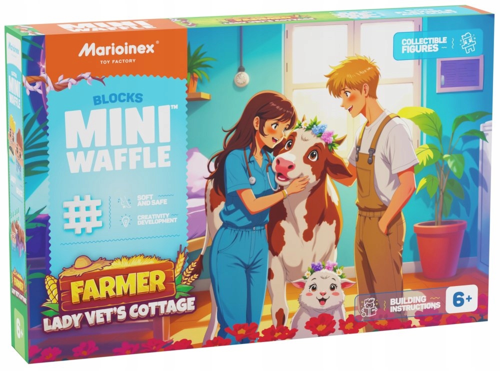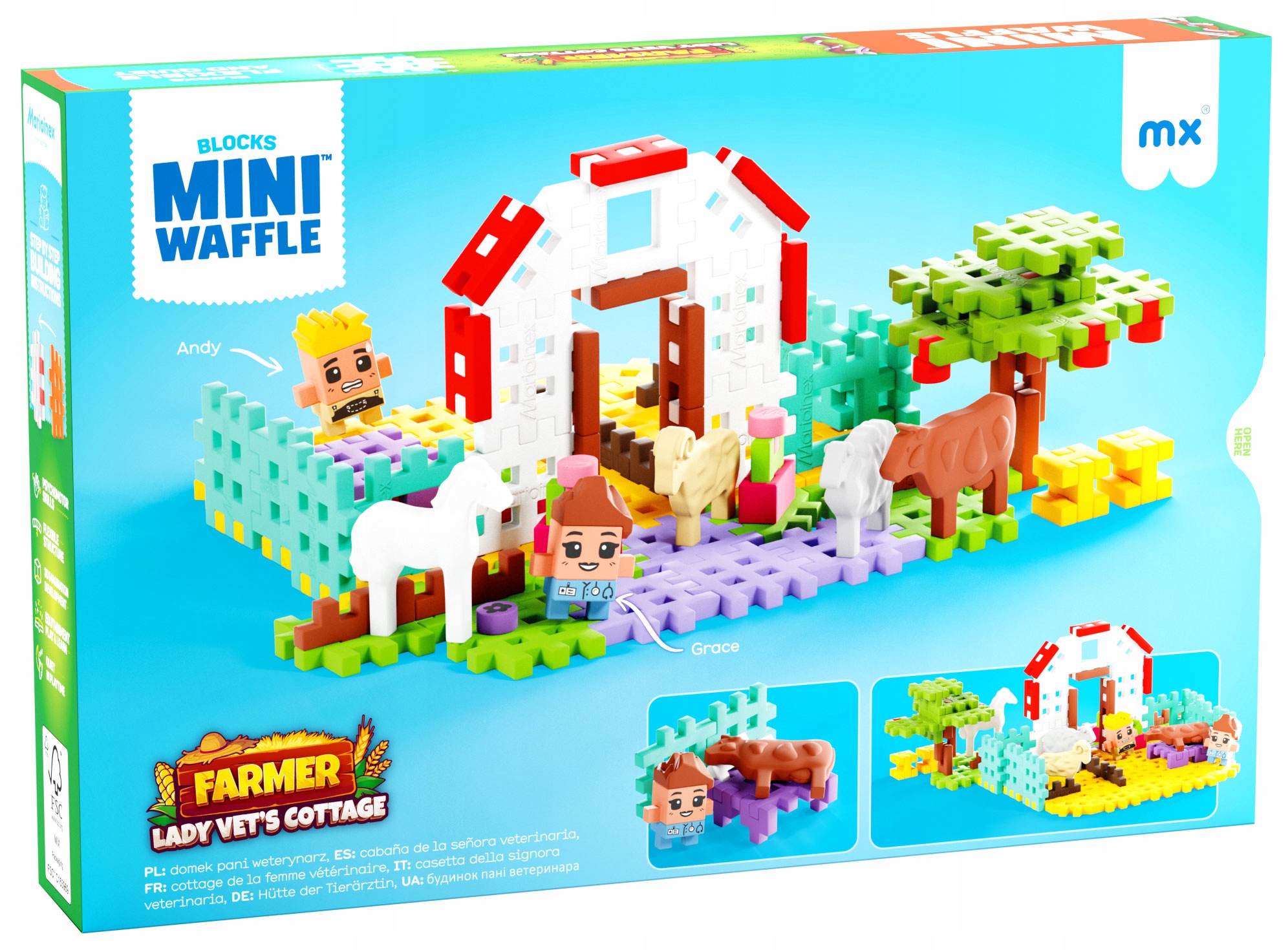 Zestaw Mini Waffle Farmer – Domek pani weterynarz zaprasza dzieci do świata troski, opieki i wiejskiego ciepła. Zbuduj własny gabinet weterynaryjny z łóżkiem, stwórz otoczenie pełne zieleni i zadbaj o zdrowie swoich ulubionych zwierząt. Grace i Andy czekają, by rozpocząć nową, pełną dobra przygodę!