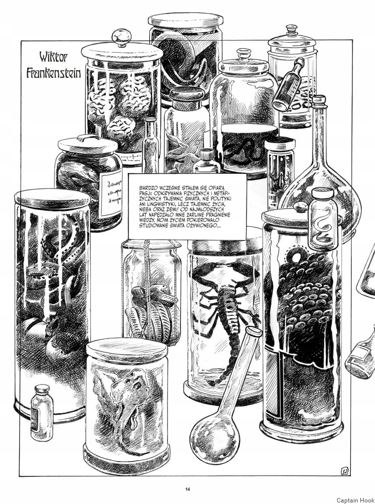 Oszałamiająca graficzna adaptacja klasycznej powieści grozy autorstwa Marry Shelly w interpretacji mistrza komiksu francuskiego Georgesa Bessa. Autora rysunków do m.in Białego Lamy, Juana Solo czy Anibala 5. Pełne detali rysunki, świat pełen cieni i mroku.