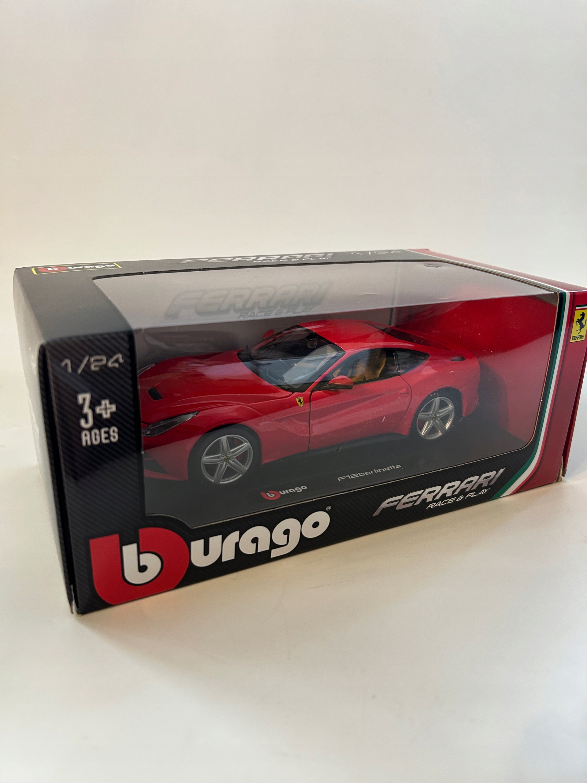 Specyfikacja produktu: Nazwa produktu: Aluminiowy model samochodu Ferrari F12 Berlinetta w skali 1/24 z podstawką.