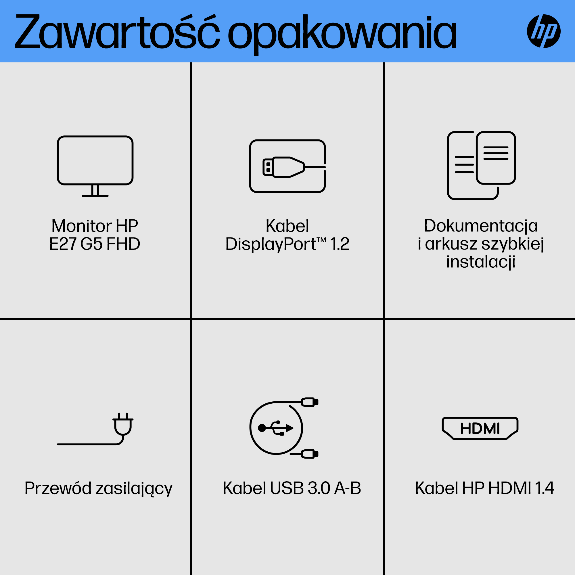 Monitor HP E27 G5 FHD został celowo zaprojektowany w taki sposób, aby zapewnić ostry obraz, spersonalizowany komfort i prawdziwą elastyczność. Ten stylowy, zaprojektowany z myślą o planecie monitor doskonale nadaje się zarówno do biura, jak i do domu.