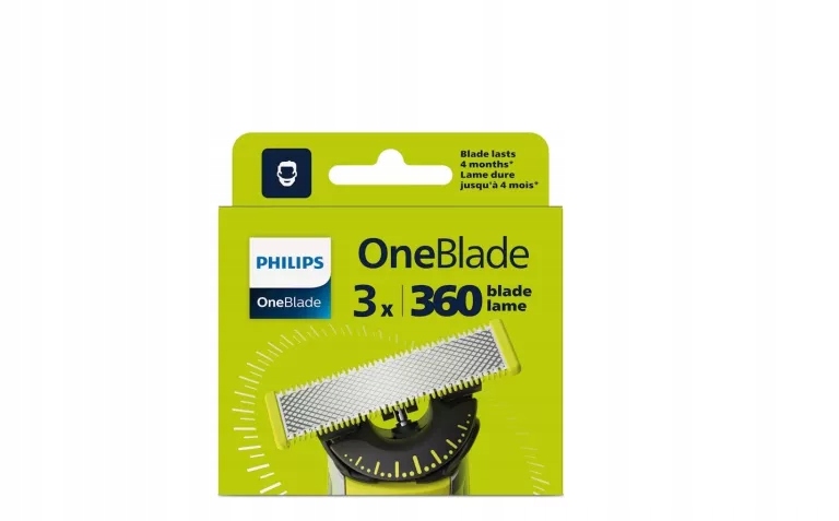 Ostrza OneBlade 360, wykonane ze stali nierdzewnej, zostały stworzone, aby zapewnić niezawodną trwałość. Ostrze należy wymieniać co 4 miesiące*, w celu zachowania odpowiedniej wydajności. Ostrza wymienia się w łatwy i szybki sposób - bez komplikacji.