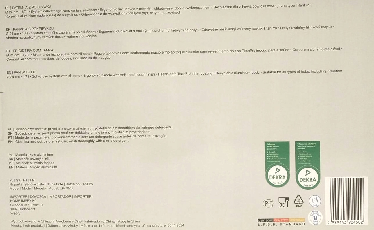 Informacje dodatkowe: Możliwość używania na kuchni ceramicznej