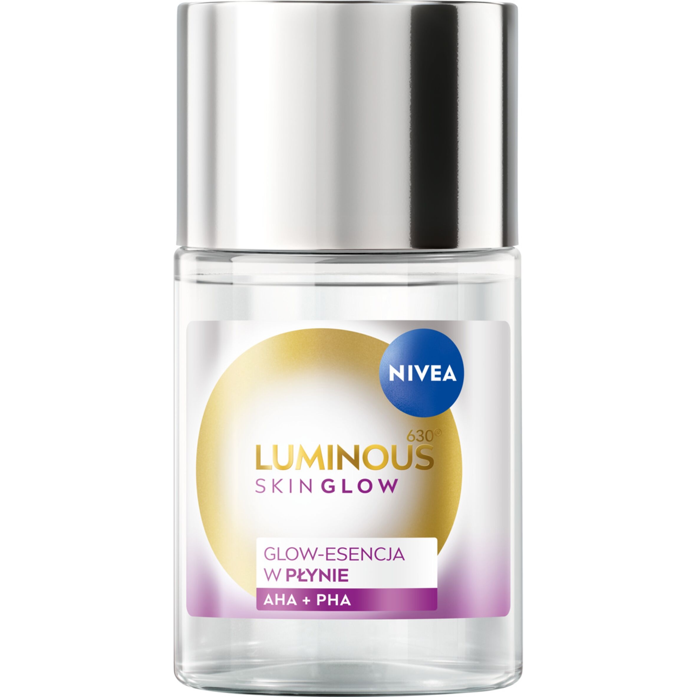 NIVEA LUMINOUS630® SKIN GLOW Glow-Esencja w płynie to peeling mikrozłuszczający, który pozostaje na skórze, by skutecznie wyzwalać jej blask: 1. WYRÓWNUJE KOLORYT: ujednolica koloryt skóry w 7 dni. 2. WYGŁADZA PORY: natychmiast zmniejsza widoczność porów i wygładza skórę. 3. DELIKATNIE ZŁUSZCZA: odnawia naskórek dzięki aktywnym składnikom: 4% AHA i 1 % PHA. Unikalna, wysoce skuteczna formuła ma lekką konsystencję i szybko się wchłania. PODWÓJNE DZIAŁANIE: natychmiastowy widoczny blask, a przy regularnym stosowaniu zdrowo wyglądająca i jednolita skóra. Wyrównuje teksturę, wygładza skórę i redukuje pory. Tolerancja dla skóry potwierdzona dermatologicznie. Odpowiednia dla wszystkich typów skóry, w tym skóry wrażliwej.