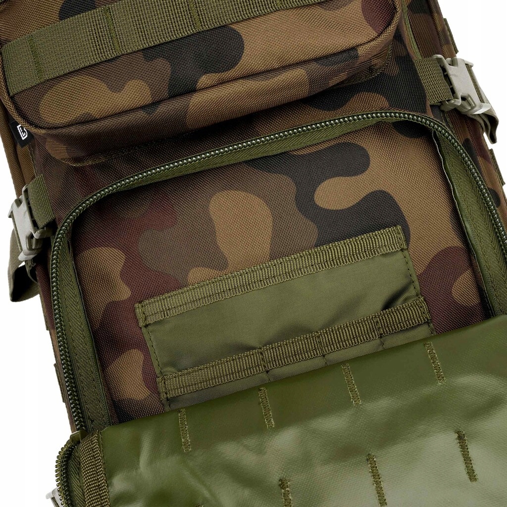 Wykonany z mocnego i odpornego na ścieranie poliestru plecak taktyczny o pojemności 40 litrów jest idealny zarówno do codziennego użytku, jak i na wyprawy w nieznane. Posiada dwie główne komory: większą wyposażoną w kieszeń na zamek i siatkową przegrodę na mapy czy notatki, oraz mniejszą z przegródkami różnej wielkości. Wygodne miejsce na wkład hydracyjny oraz dwie dodatkowe kieszenie (jedna zewnętrzna na podręczne przedmioty, a druga z organizerem) stanowią dodatkowe atuty tego modelu.