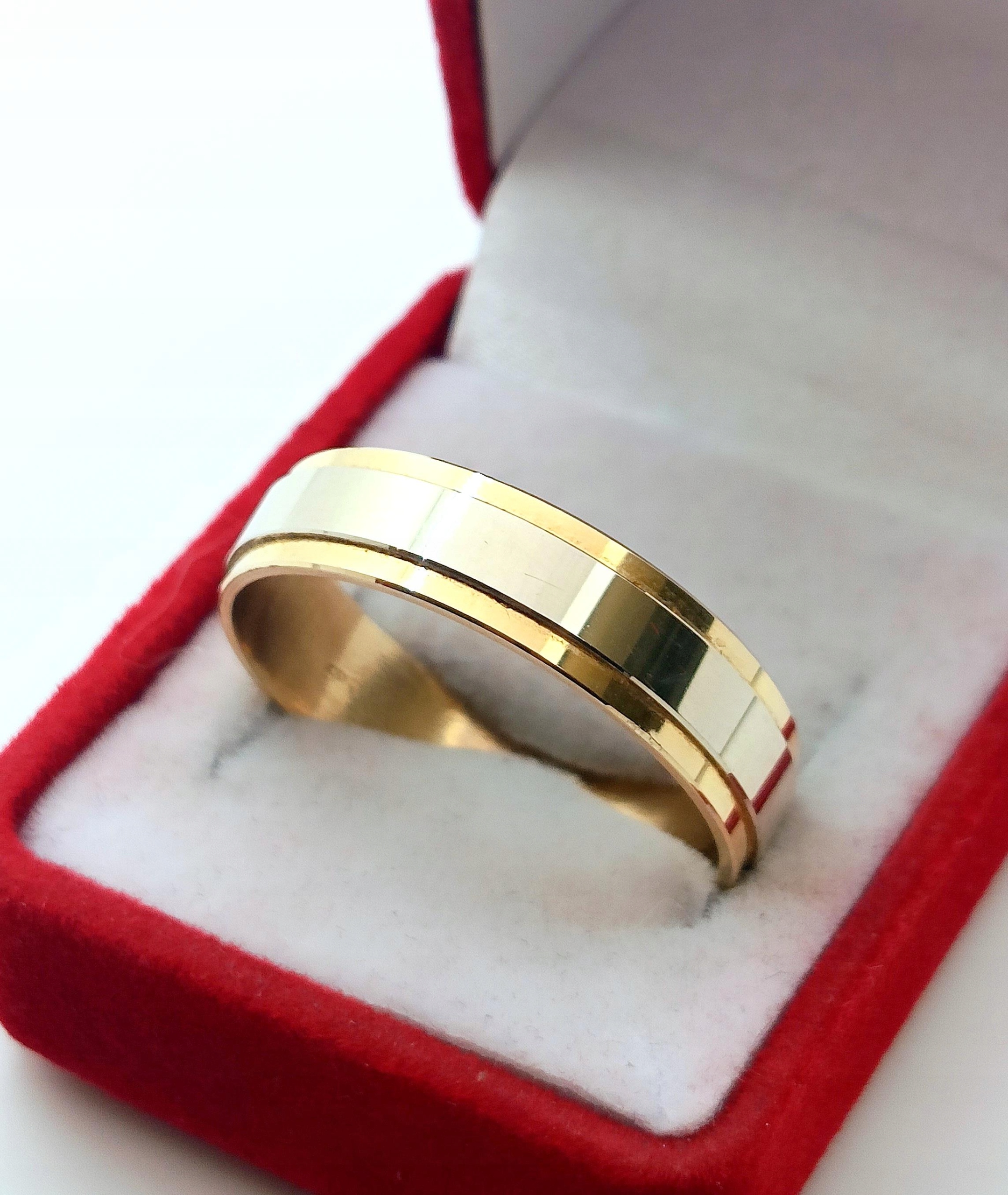 Złota obrączka Bicolor szer.6mm Pr.585 W:6,20gr Roz.31