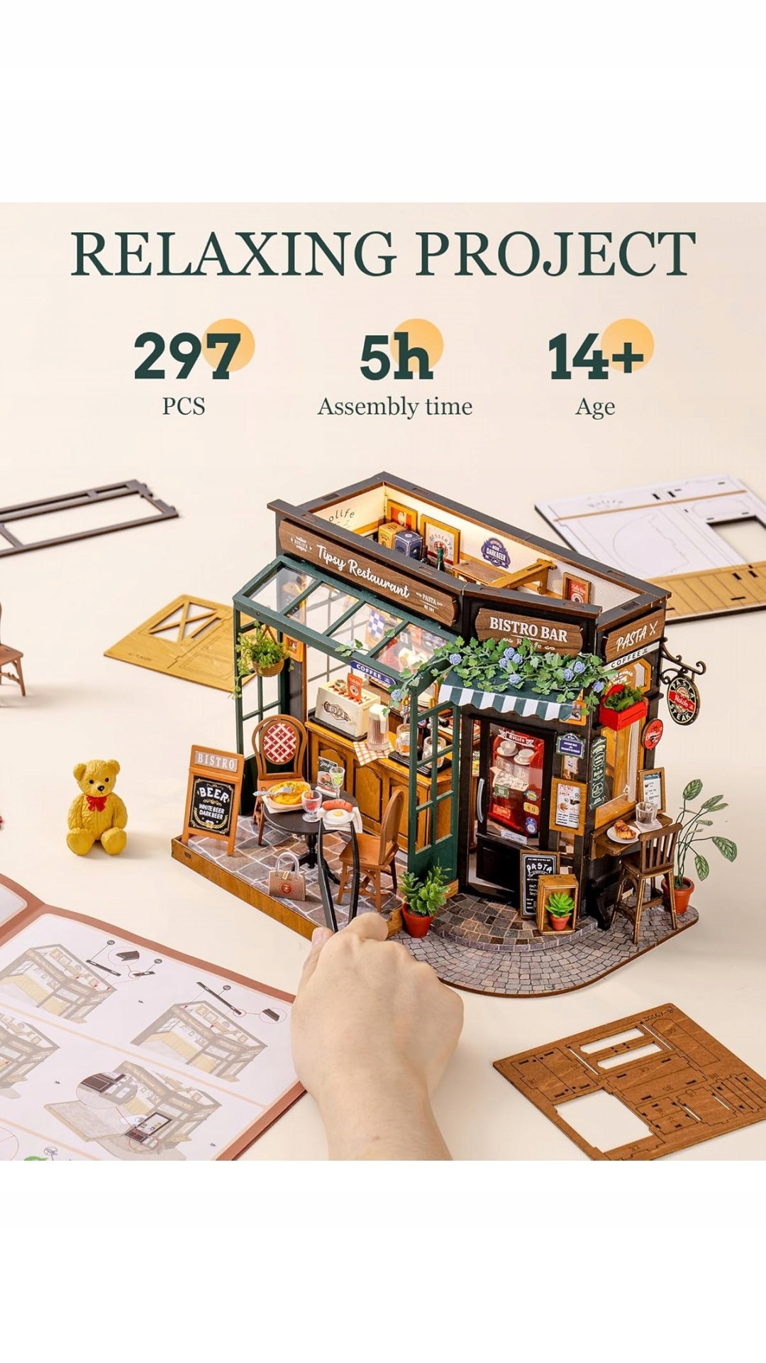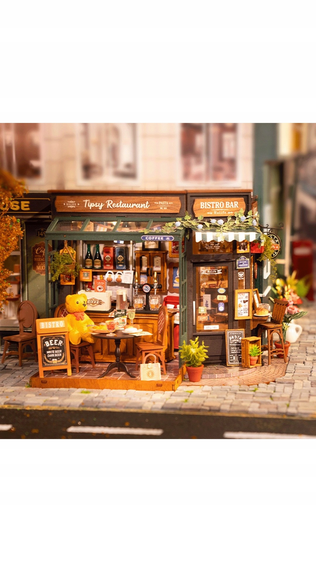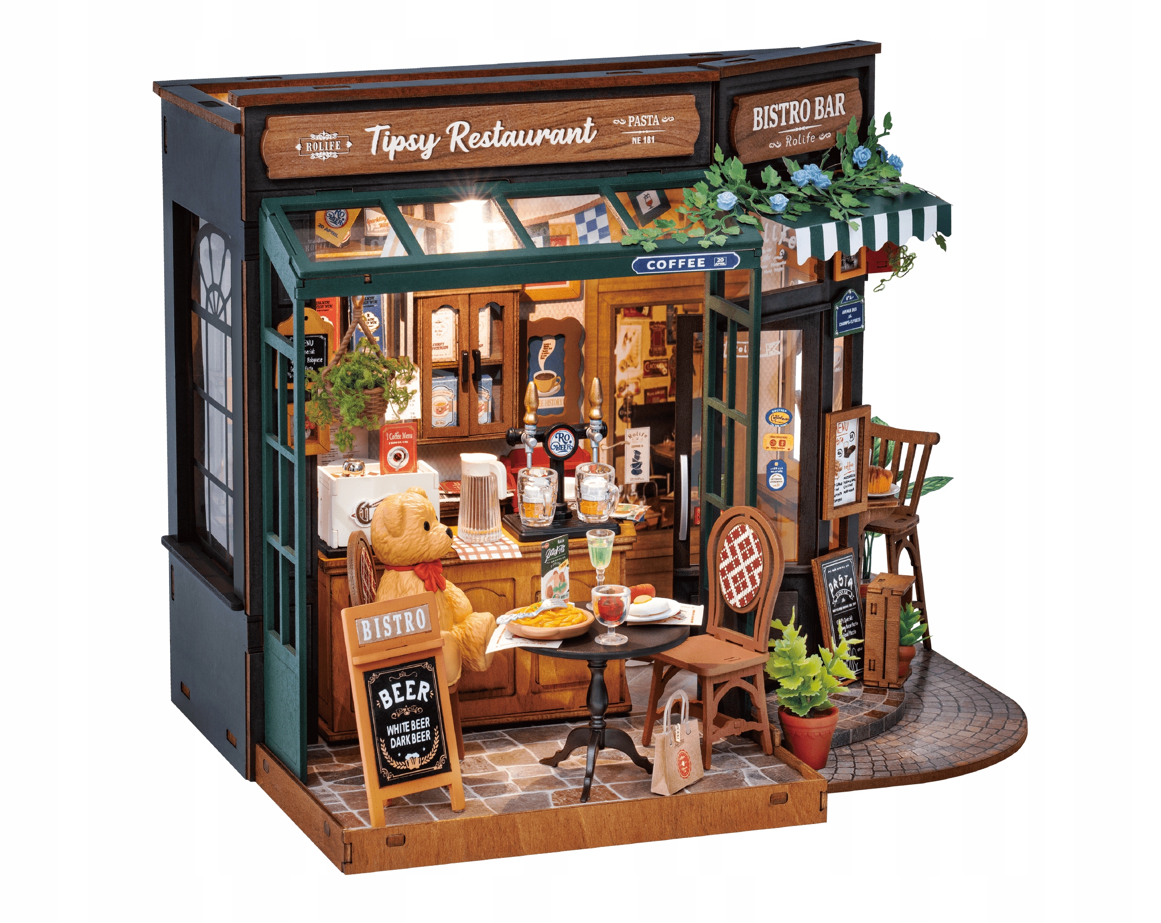 Rolife - Restauracja Tipsy, to doskonałej jakości miniaturowy model do składania (z 297 elementów) zapewniający około 5 godzin wciągającej zabawy.