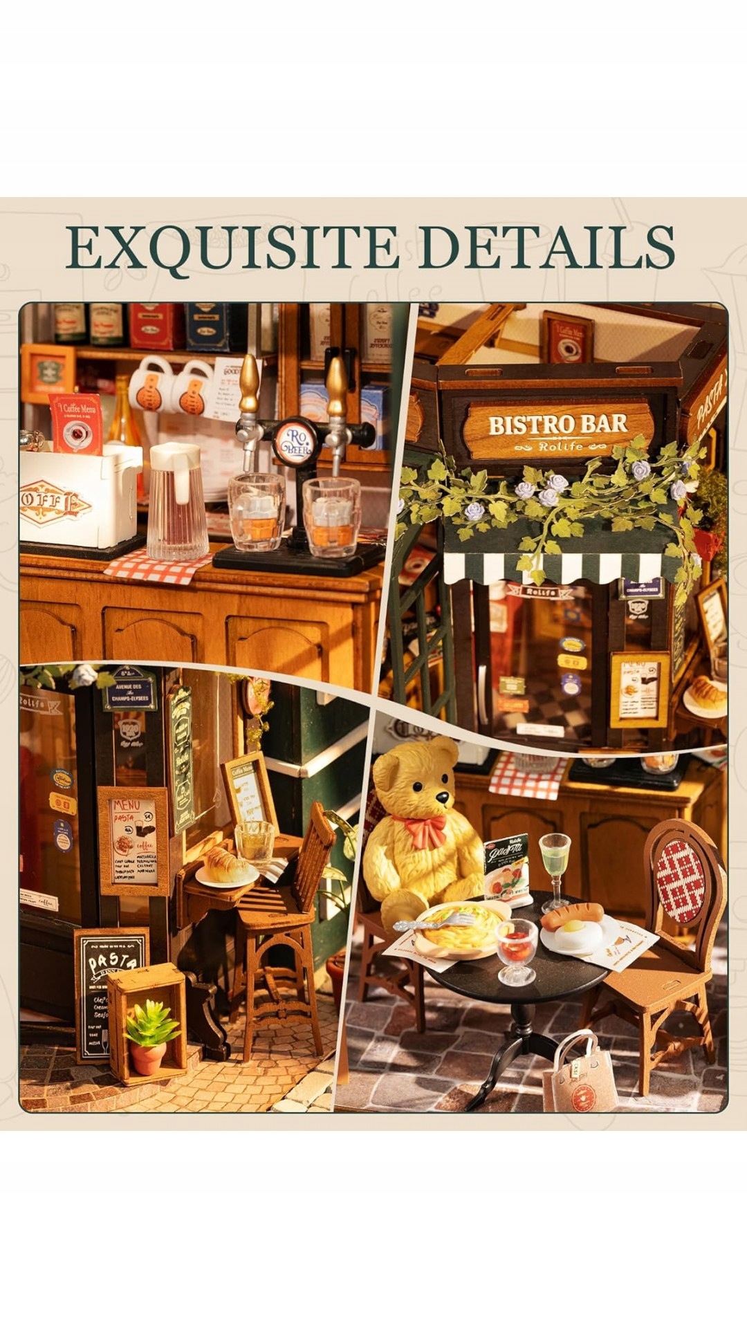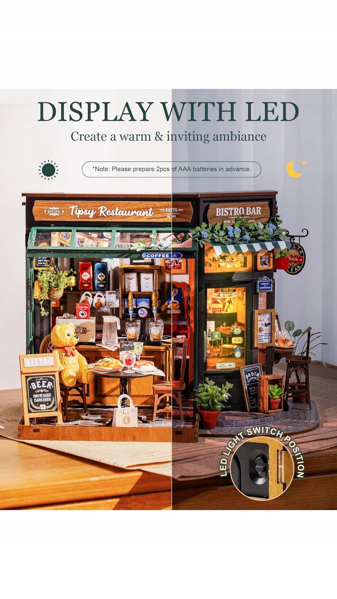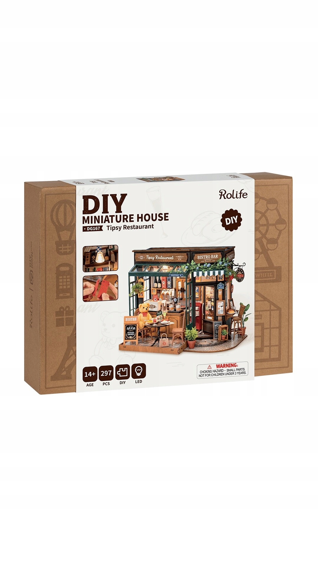 Rolife - Restauracja Tipsy, to doskonałej jakości miniaturowy model do składania (z 297 elementów) zapewniający około 5 godzin wciągającej zabawy.