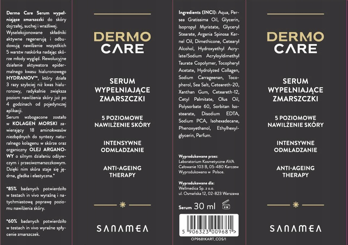 Sanamea Dermo Care - Serum Wypełniające Zmarszczki 30ml to zaawansowany produkt stworzony z myślą o osobach pragnących skutecznie walczyć z oznakami starzenia. Dzięki innowacyjnej formule serum intensywnie nawilża, wygładza i ujędrnia skórę, przywracając jej młodzieńczy blask.