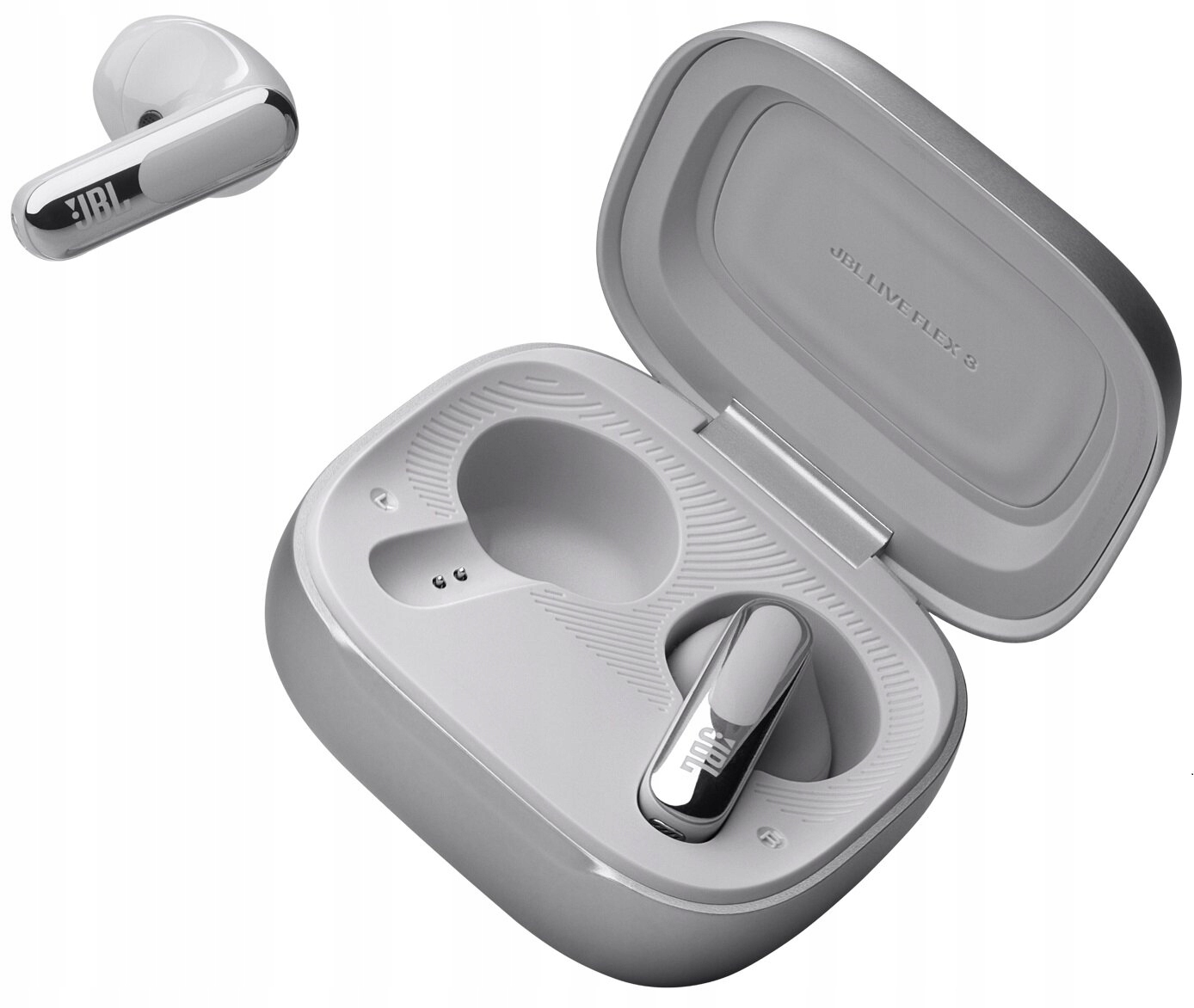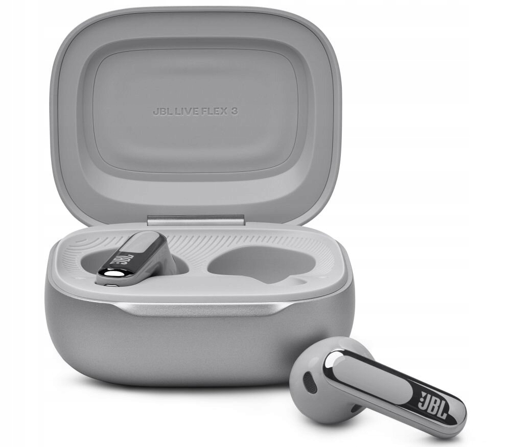 Słuchawki Live Flex 3 TWS od JBL to model o otwartej konstrukcji, który od razu przykuwa uwagę swoim designem. Ich wyjątkowym wyróżnikiem jest możliwość wyboru jednego z czterech kolorów (srebrny, srebrny, fioletowy lub srebrny), co czyni je wyjątkowymi – a dzięki wodoodporności IP54 sprzęt wchodzi na jeszcze wyższy poziom! Waga każdej słuchawki to zaledwie 4,5 g – to m.in. dzięki temu ich wielogodzinne użytkowanie jest tak wygodne.