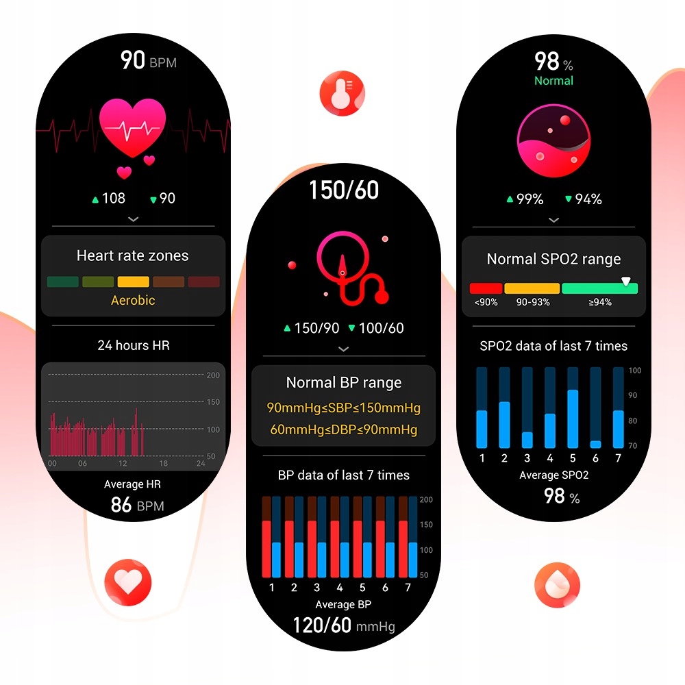 ✅ Pomiar tętna, ciśnienia i saturacji (SpO₂) pozwala na bieżąco monitorować stan organizmu – bez wizyty u specjalisty.