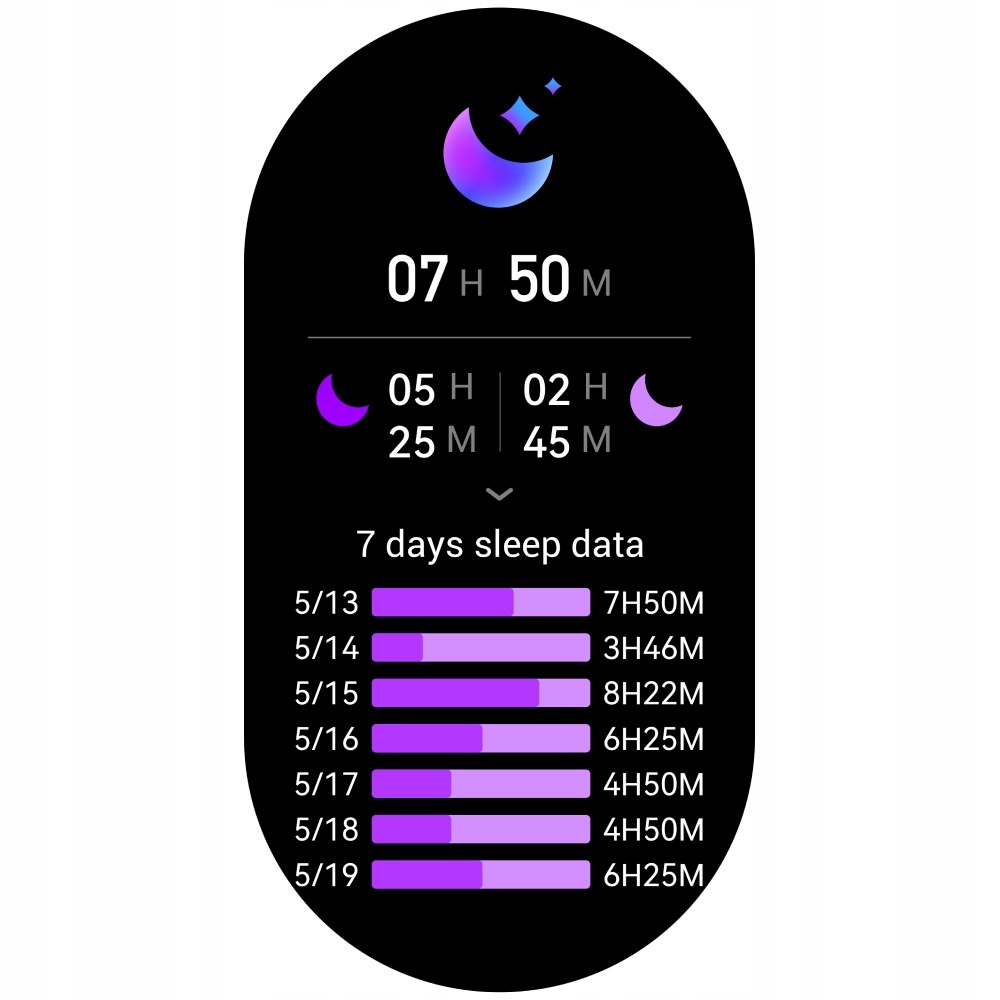 ✅ Analizuj długość i jakość snu – zegarek rozpoznaje fazy snu głębokiego, płytkiego oraz nocne wybudzenia.