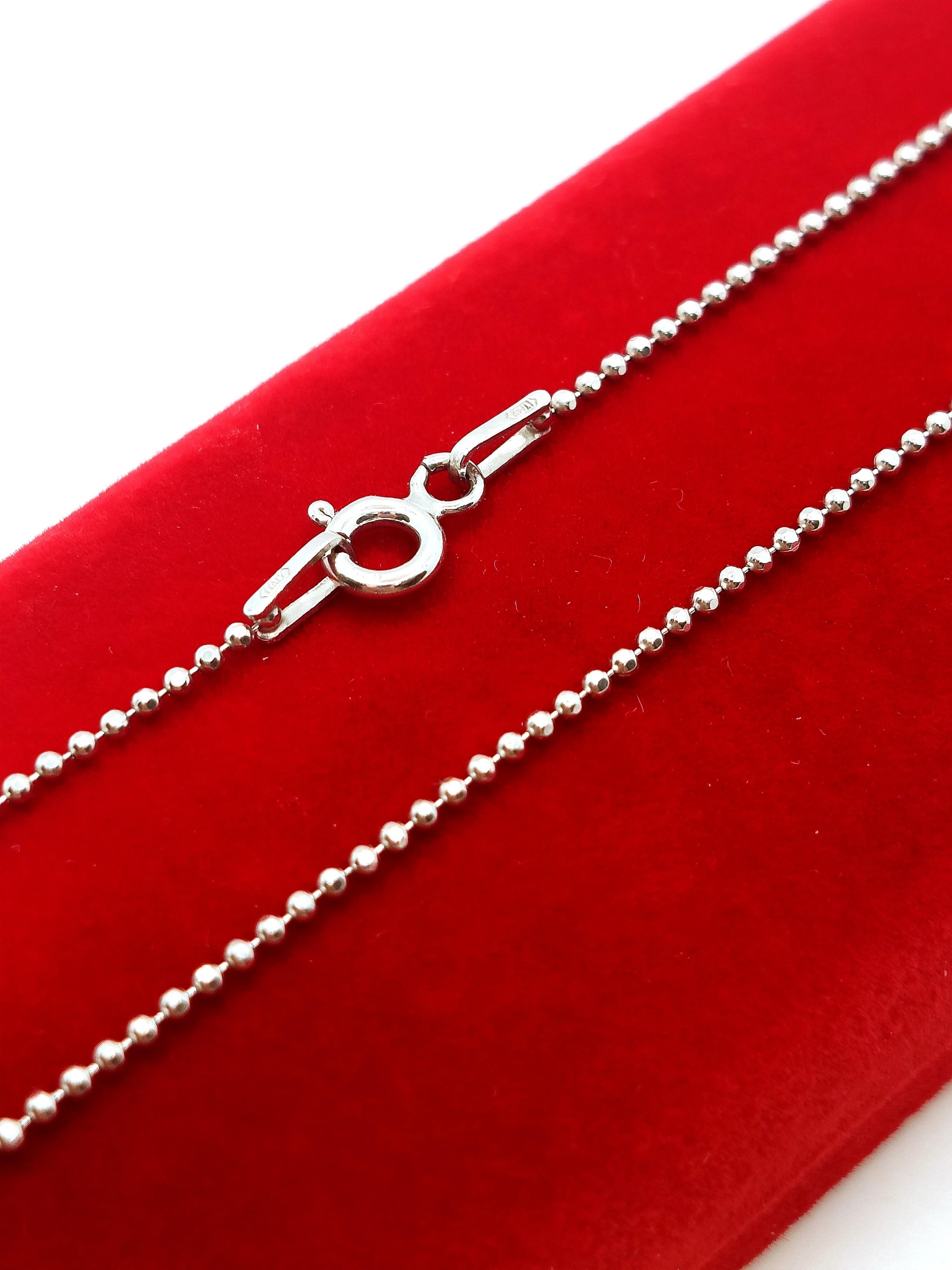 Oferujemy na sprzedaż srebrny łańcuszek o splocie kulki.