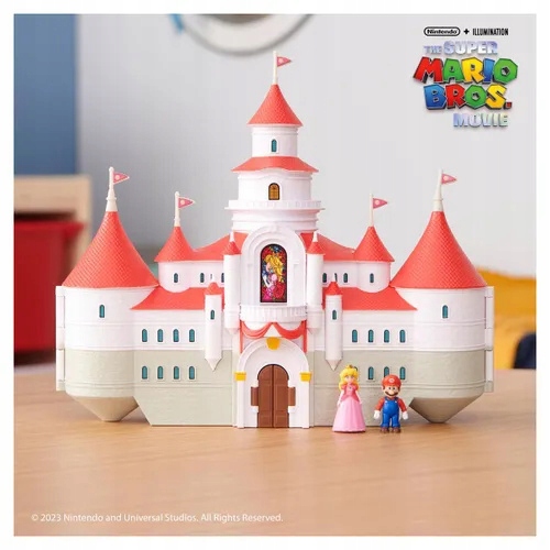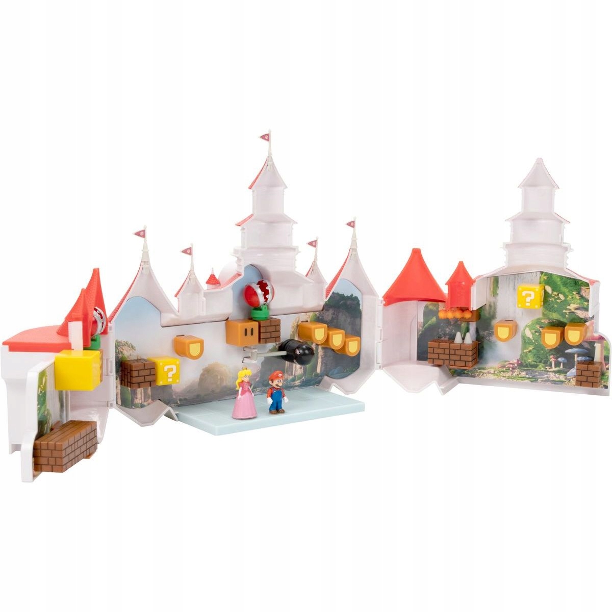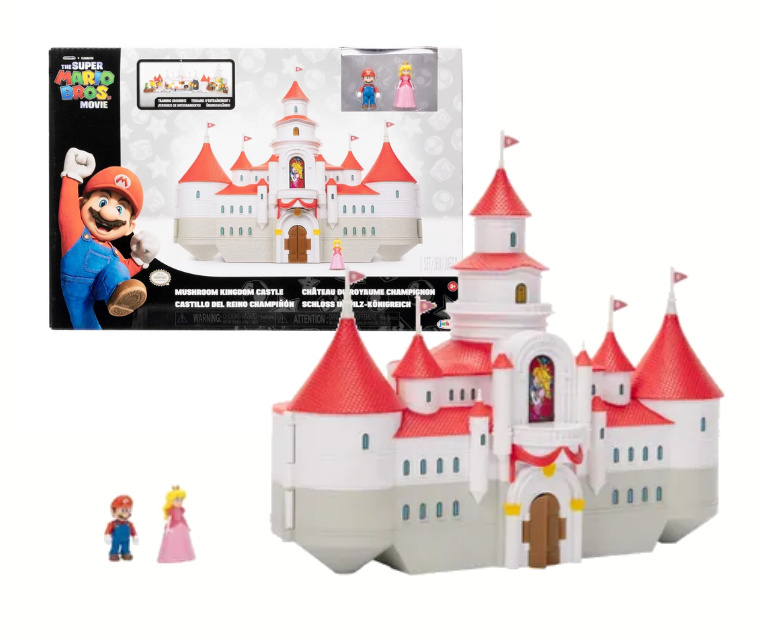 Zamek z Grzybowego Królestwa jest całkowicie zamknięty, ale można go otworzyć na szerokość prawie 56 cm, żeby odsłonić akcesoria i przeszkody doskonale znane z filmu i gry, takie jak kwiatki-piranie, Bullet Bill, klocki-niespodzianki i ogniste elementy.