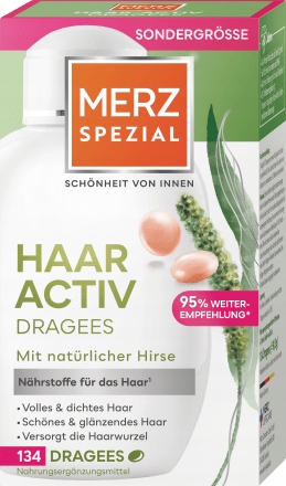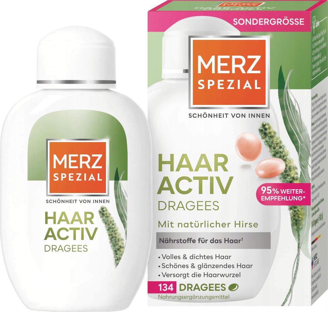 Ponieważ Merz Spezial Haar Activ draż. wzmacniające włosy, zawierają wszystkie te składniki, wzmacniają one cebulki włosów i stymulują wzrost włosów zapewniając przy tym ich gęstość oraz lśniący, zdrowy blask.