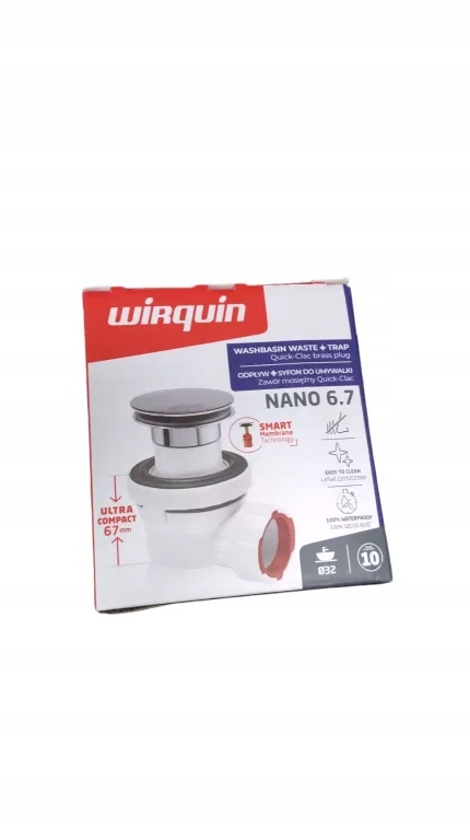 Kompaktowy syfon umywalkowy do umywalki niski klik-klak chrom WIRQUIN Nano 6.7 30724228
