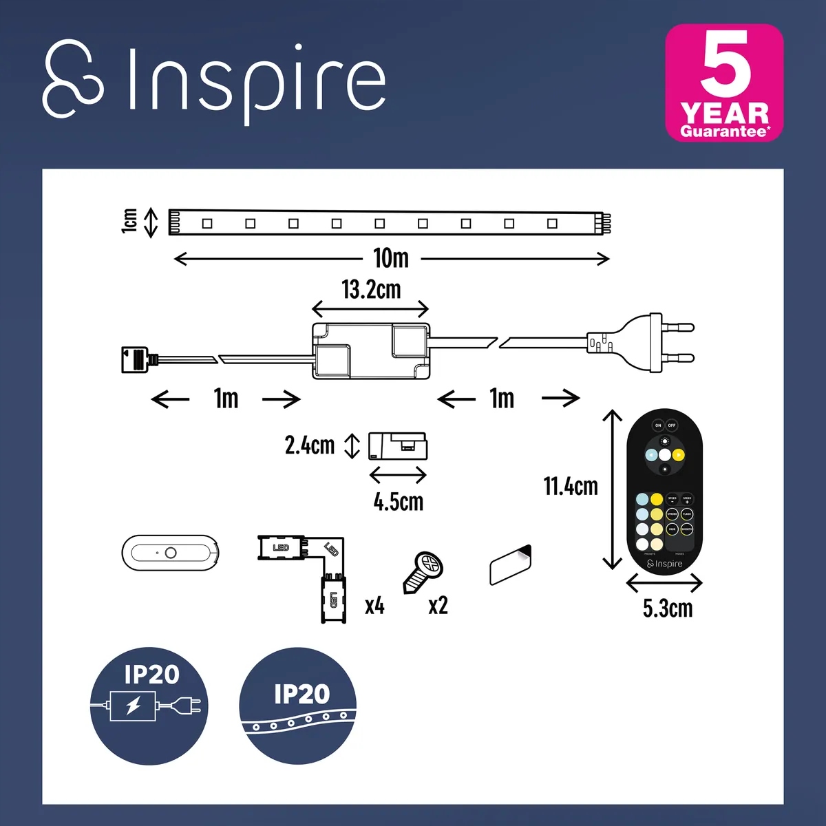 Taśma LED z zestawu CUTFLEXI INSPIRE jest idealna do średnich i dużych projektów oświetleniowych w pomieszczeniu dzięki intensywności 620lm/m. Dołączony pilot zdalnego sterowania oferuje możliwość zmiany temperatury światła od 2700K (ciepła biel) do 6500K (zimna biel) i dostosowania intensywności do wyboru. Duża gama trybów i scenariuszy pomoże Ci stworzyć potrzebną atmosferę. Łatwa w montażu, taśma musi być przyklejona taśmą 3M już na produkcie. Można go dostosować. Rzeczywiście, można go przyciąć co 10 cm i ponownie połączyć, aby dopasować się do kształtu i długości projektu dzięki dołączonym złączom "L". Dostępne w rozmiarach 1,5 m, 5 m i 10 m. Ten produkt jest częścią ekologicznego podejścia, ponieważ Inspire sprawił, że jego sterownik jest naprawialny i gwarantuje produkt przez 5 lat