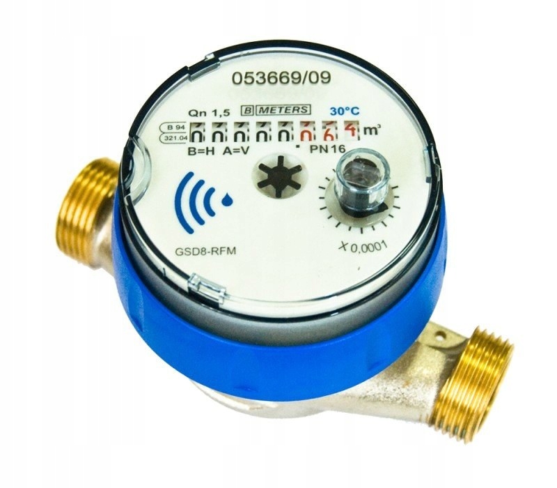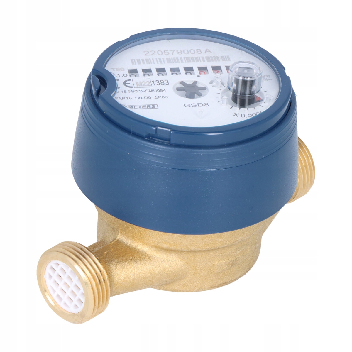 Wodomierz jednostrumieniowy, suchobiezny wyposazony w osmiobebenkowe liczydło obracane o 360°. Urządzenie napedzane jest za posrednictwem wzmocnionego czteropolowego sprzegła magnetycznego, który eliminuje jego zerwanie oraz poslizg. Dodatkowo zwieksza swoja dokładnosc pomiaru poprzez utrzymanie wirnika w hydromagnetycznym balansie.Kamien szafirowy, który jest umiejscowiony w podporze mechanizmu liczydła zapewnia urzadzeniu wieksza czułosc metrologiczna na niskie przepływy wody oraz wydłuza trwałosc licznika.Wodomierz produkowany jest wg. dyrektywy 2004/22/WE. Wystepuje w zakresie pomiarowym R160-H lub R100-H i R50-V (MID) zarówno do wody zimnej (30°C) jak również do wody ciepłej (90°C) w srednicach 12 i 34. Model GSD8 zgodnie z Atestem Higienicznym jest dopuszczony do pomiaru zuzycia wody przeznaczonej do spozycia.Wodomierz jest dostepny w dwóch wersjach: standardowy wodomierz wodomierz wyposażony w moduł radiowy Wireless M-BUS lub przewodowy MBUSCiśnienie nominalne PN: 16 barDodatkowe zabezpieczenie antymagnetyczne: takKlasa dokładności R wg MID w pionie (V): 50Klasa dokładności R wg MID w poziomie (H): 100Klasa temperaturowa (nominalna temperatura pracy): T30Legalizacja według: MIDPrzepływ maksymalny Q4: 2 m3/hPrzepływ nominalny Q3: 1,6 m3/hPrzystosowany do nadajnika impulsów: takRodzaj nadajnika impulsów: Nakładka radiowaRodzaj wodomierza (1): SuchobieżnyRodzaj wodomierza (2): JednostrumieniowyWaga: 0,5 kgWysokość: 75 mmZ nadajnikiem impulsów: nie