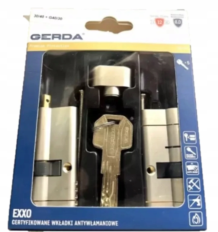 Antywłamaniowa bębenkowa wkładka PREMIUM w najwyższej klasie bezpieczeństwa 6D. Nowa konstrukcja wkładki z zabezpieczeniem przed otwarciem metodą „bumpingu” oraz skutecznymi rozwiązaniami chroniącymi ją przed rozwierceniem, wyrwaniem, manipulacją. Zawiera podwójny pin antypickowy oraz 9 aktywnych pinów w 2 rzędach (5+4). Korpus wkładki wykonany jest z mosiądzu, sprężynki ze stali nierdzewnej a klucz z odpornego na zużycie nowego srebra. Wkładka zawiera również zabezpieczenie typu antisnap. Posiada certyfikat przeciwpożarowy. W zestawie karta kodowa oraz 5 kluczy.