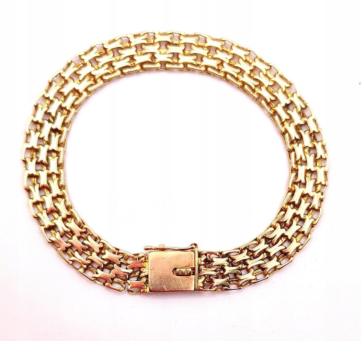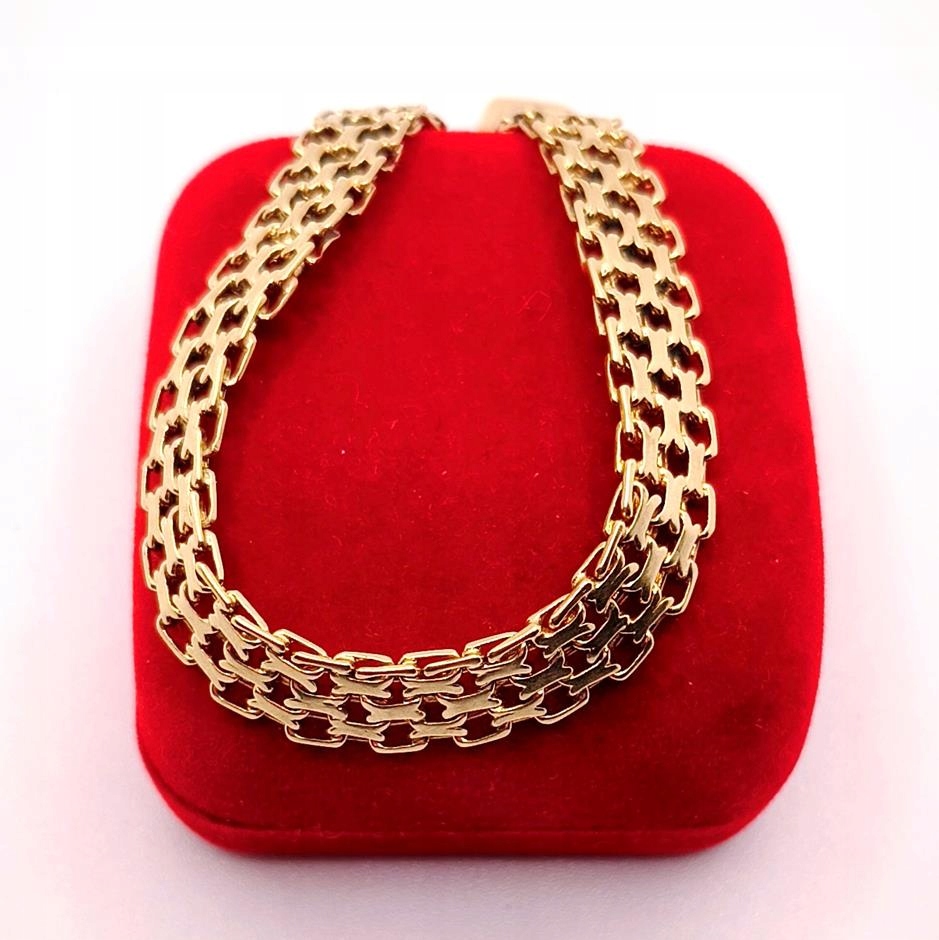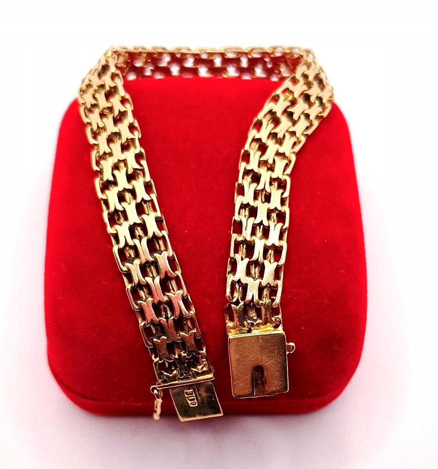 W ofercie sprzedaży posiadamy piękną, złotą bransoletkę, o splocie bismarck.